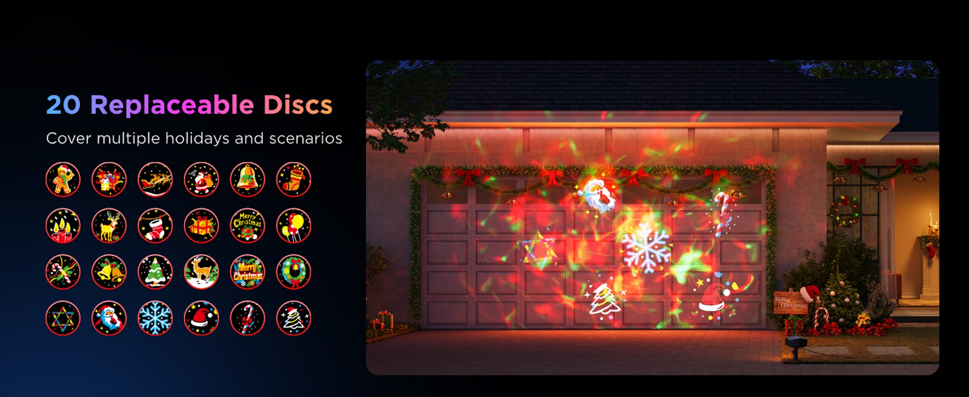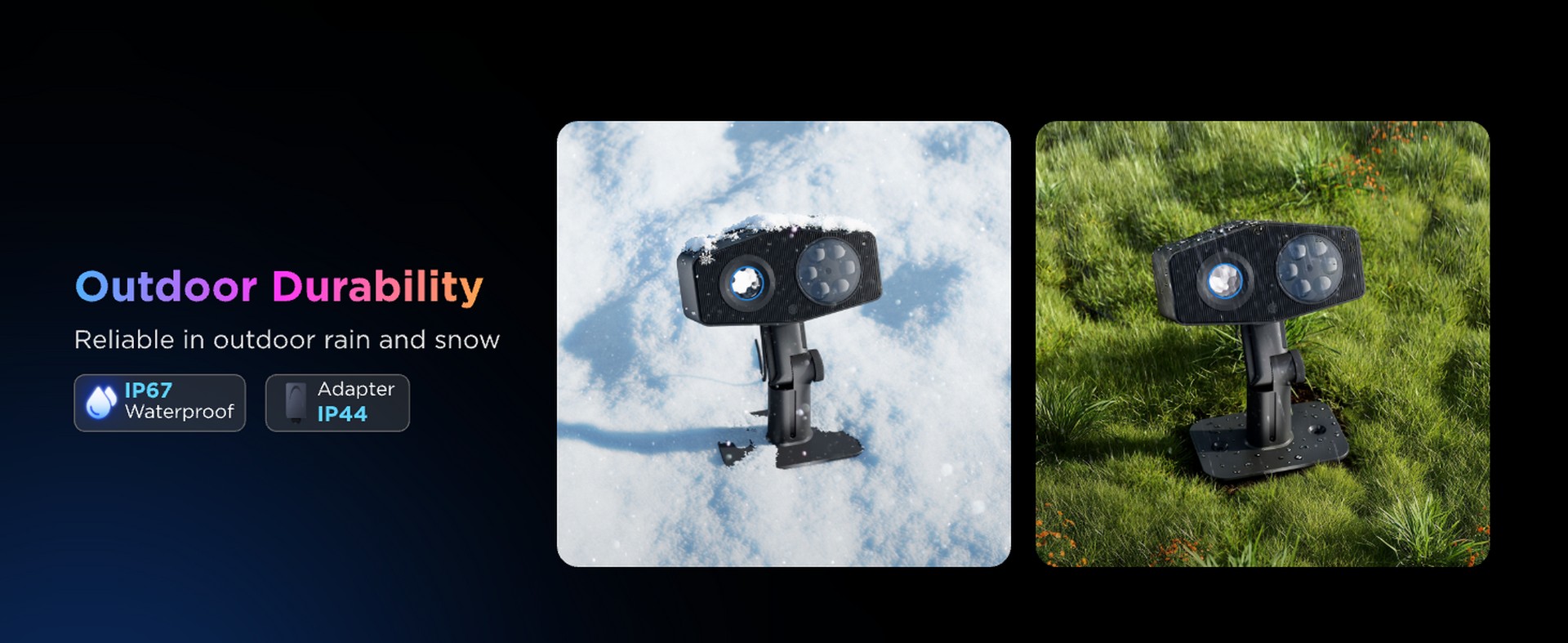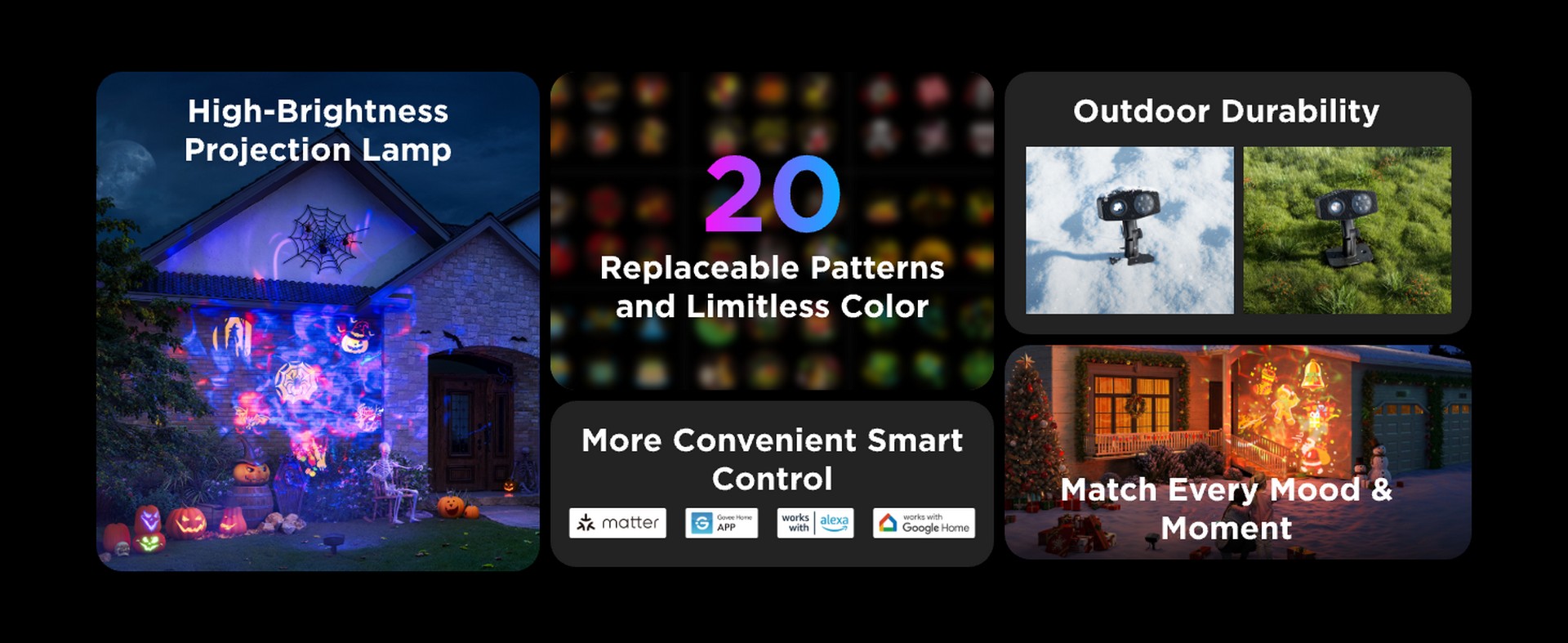 Govee Outdoor Decoration Projector Light forvandler enhver anledning til en livlig visuell opplevelse. Med dynamiske mønstre og klare projeksjoner kan du enkelt skape riktig atmosfære for hver sesong eller feiring – alt med én lampe. Den kraftige LED-belysningen og smarte styringen gjør den til en ideell løsning for kreativ utendørsbelysning året rundt.
