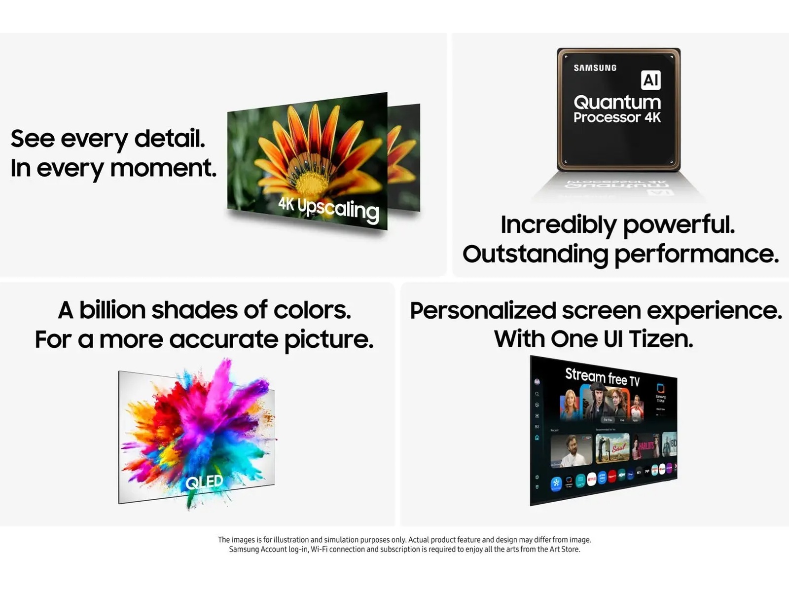 Det følger med fot, fjernkontroll og strømkabel.