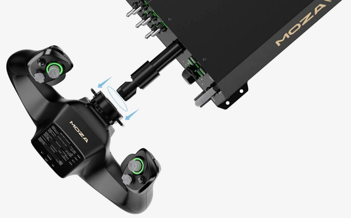 Yoken har en hurtigkoblingsmekanisme, lik de som brukes i racerbiler, som muliggjør rask og enkel montering eller frakobling fra basen. Dette designet gjør det enkelt å bytte mellom ulike yoker etter behov.