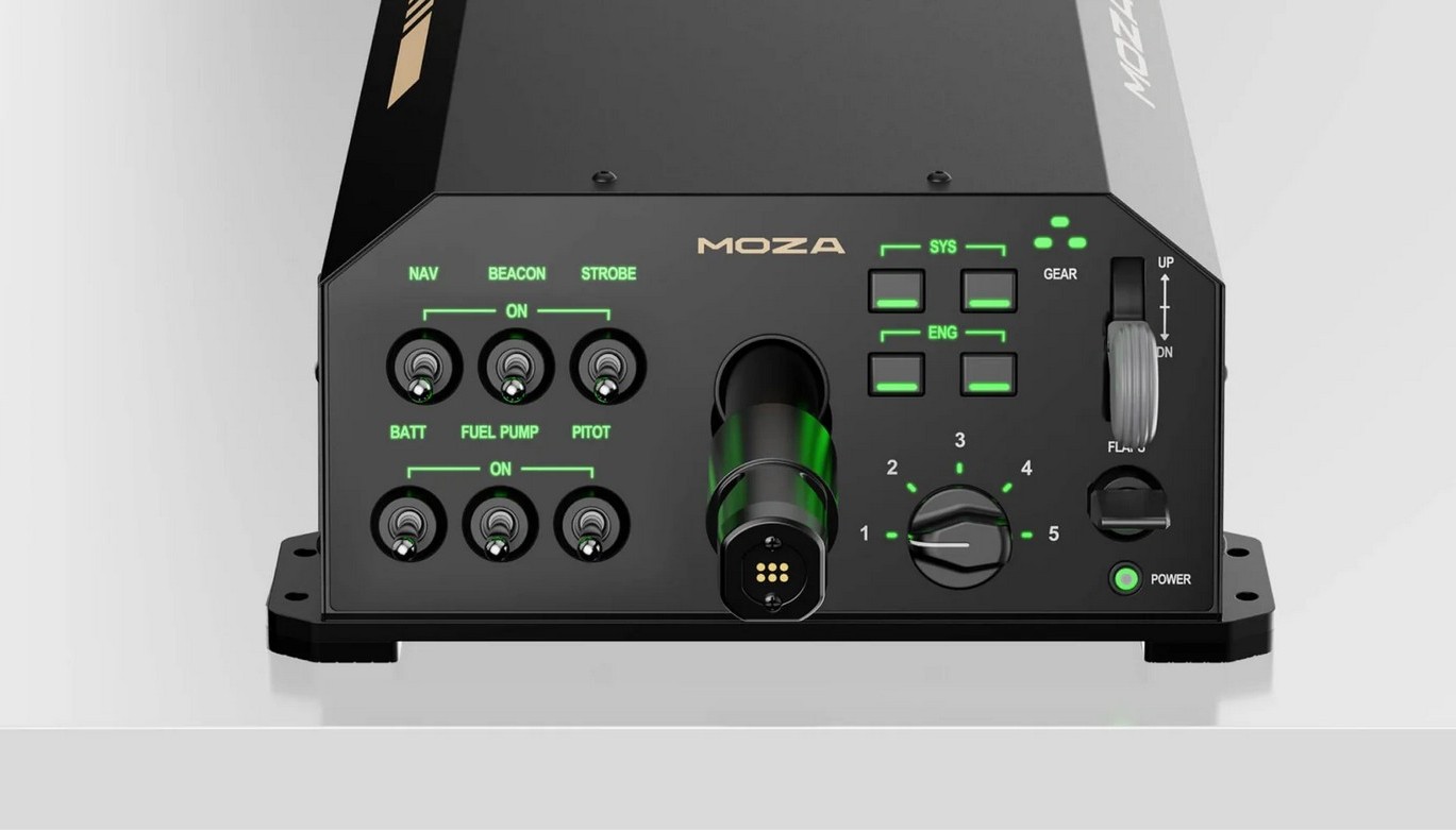 Frontpanelet har 13 fysiske brytere, fullt tilpassbare via MOZA Cockpit-programvaren. Brukere kan programmere disse bryterne til avanserte funksjoner som belysning, telemetri og langtids-/langtrykkskommandoer, for en mer oppslukende opplevelse under avgang, landing og flyging.