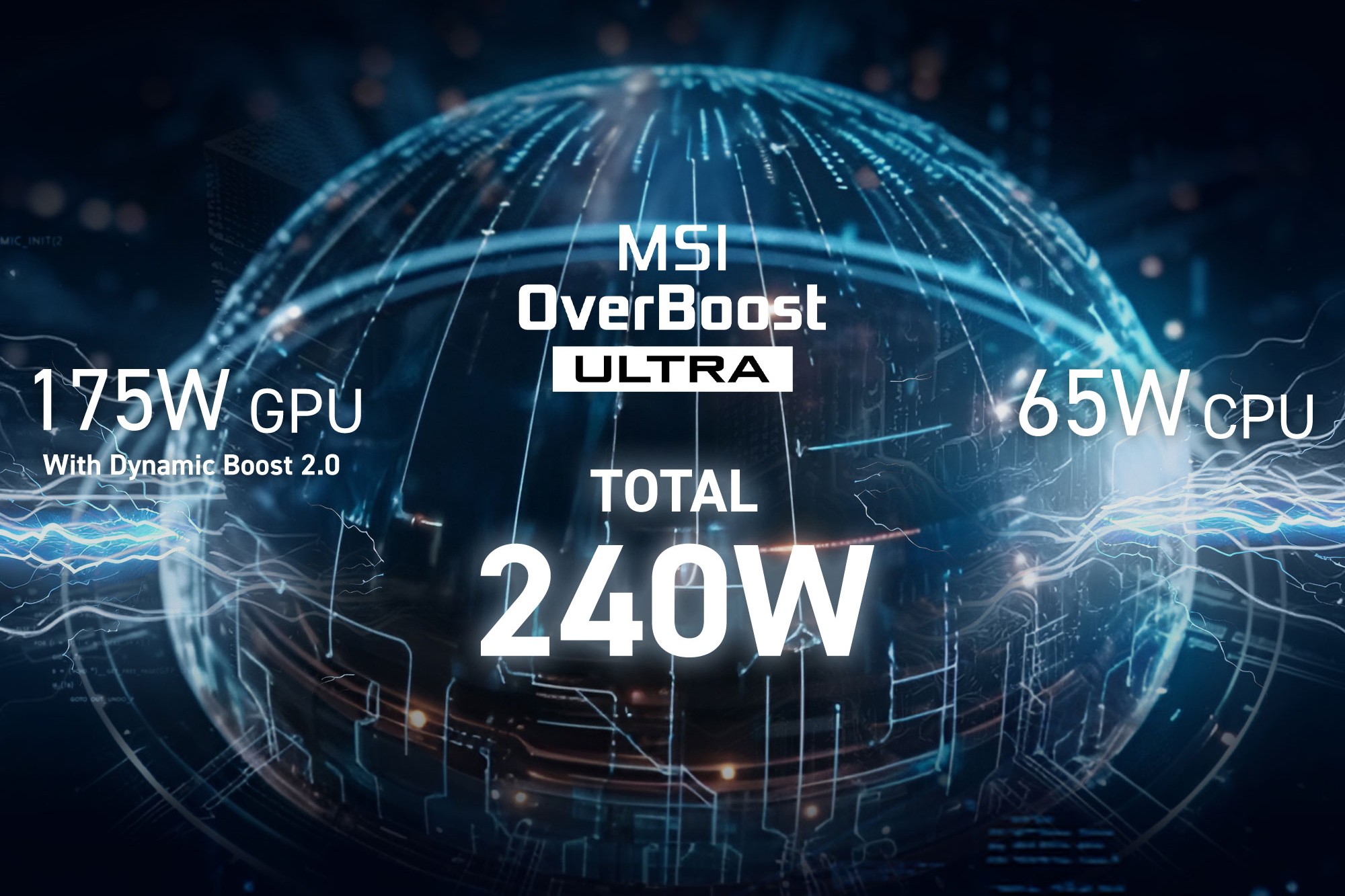 Når ekstreme arbeidsbelastninger krever fulle CPU- og GPU-ressurser, leverer MSI OverBoost Ultra-teknologi topp kombinert ytelse med en total effektutgang på 240W.**240W basert på konfigurasjon av AMD Ryzen 9 8940HX-serien med NVIDIA® GeForce RTX™ 5080 bærbar GPU og høyere.*Under Extreme Performance-modus via MSI Center med strømadapter.Kan variere etter scenario.