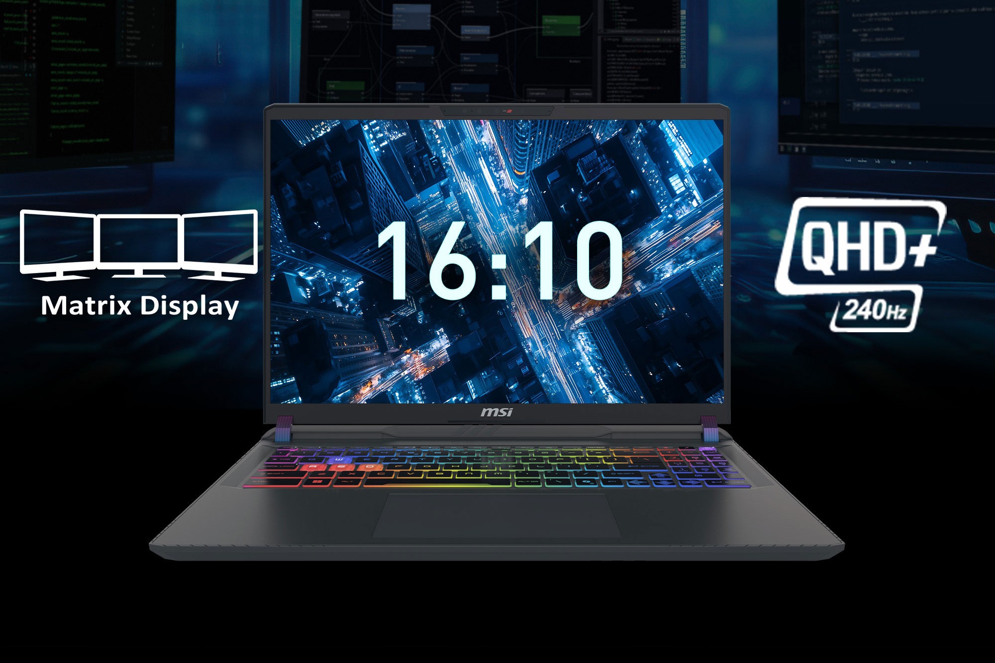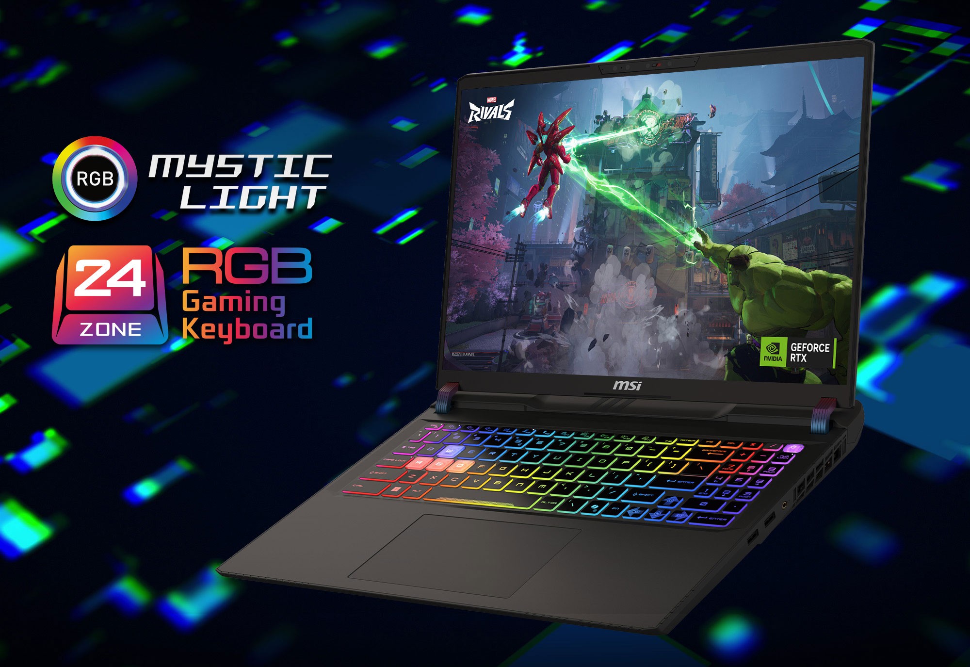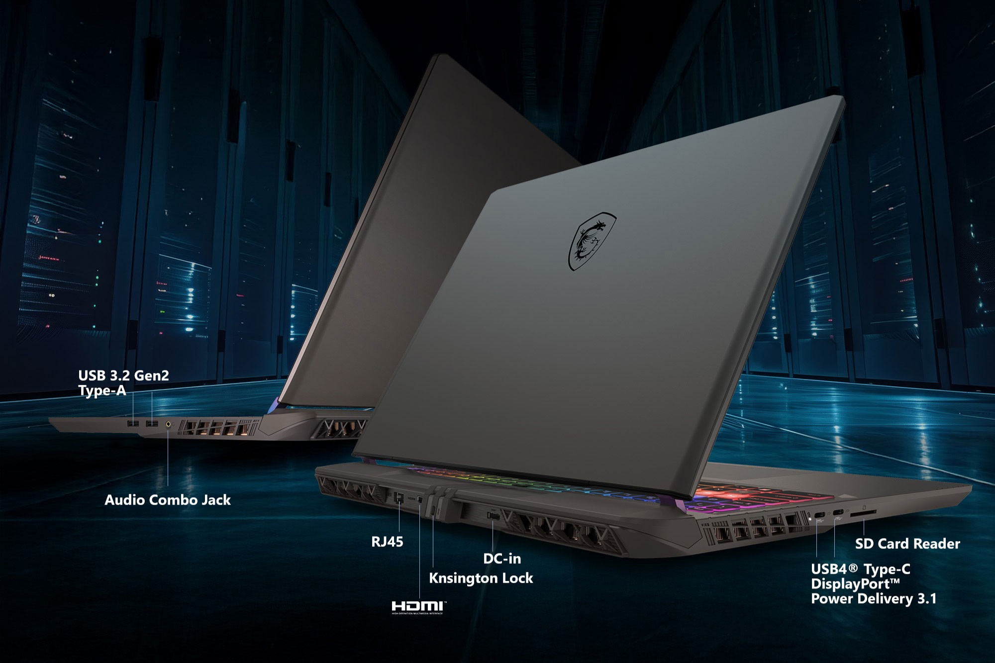 MSI gaming-laptoper er skreddersydd for spillere med høy oppløsning og oppdateringsfrekvens. Gjør spillverdenen din mer livaktig og jevn enn noensinne. Utvid synsfeltet ditt over flere skjermer med HDMI™ og USB4.*Valgfritt. Faktiske spesifikasjoner kan variere etter konfigurasjon.