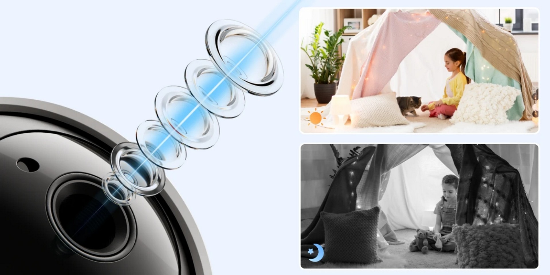 Hold kontakten med dem du bryr deg mest om når som helst. Med innebygd mikrofon og høyttaler kan du snakke med barna og foreldrene dine, eller leke med kjæledyrene – uansett hvor du er, via kameraet.
