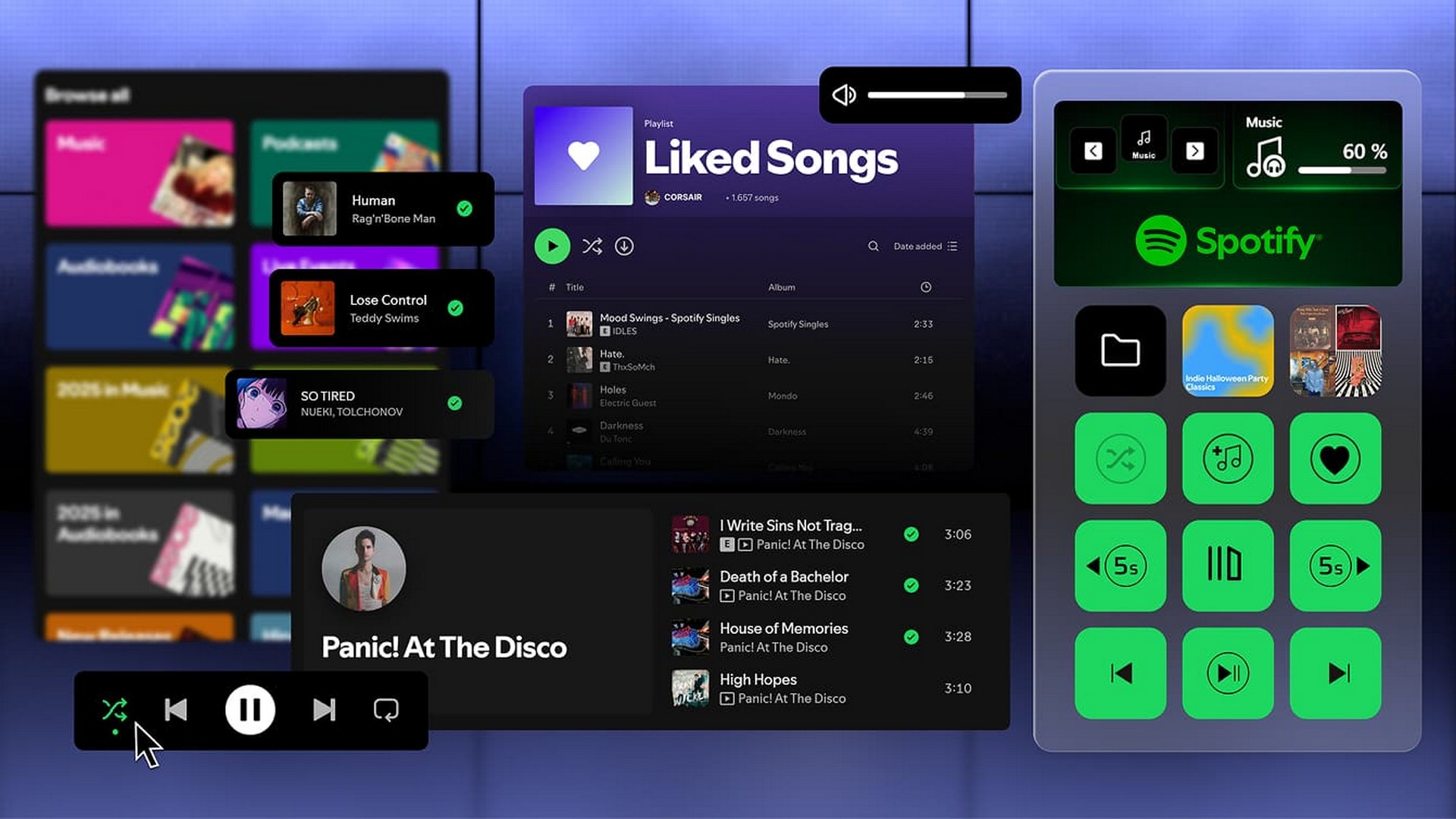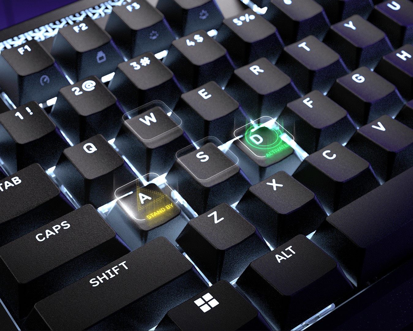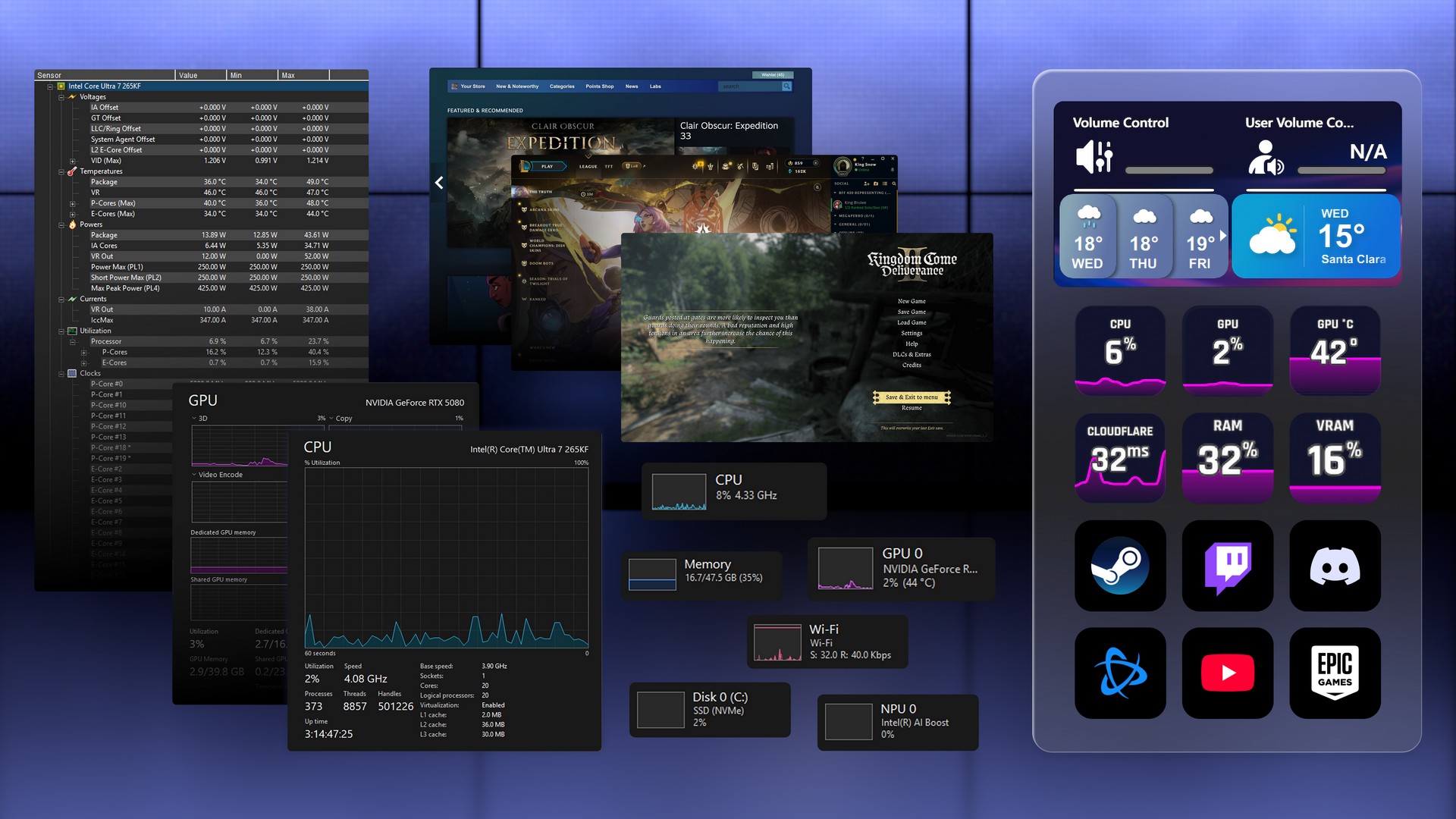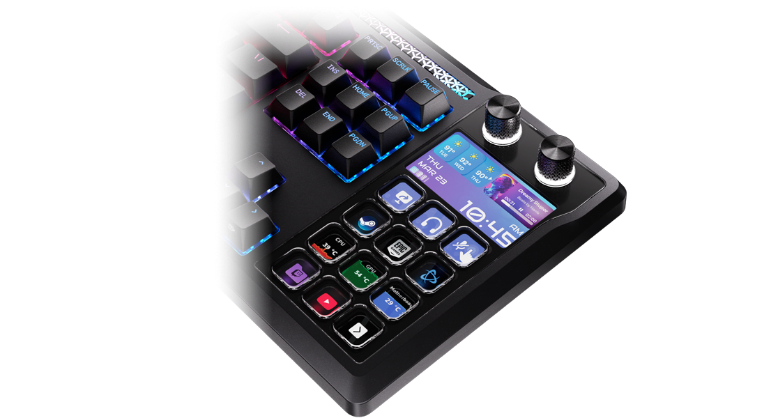 Hold alt innen rekkevidde for enkel multitasking og sanntidsoversikt. Kontroller lyd, apper og systemstatus direkte fra tastaturet uten å pause spillet!
