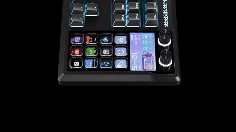 12 LCD-taster lar deg utløse kommandoer med ett trykk, dobbelttrykk eller trykk og hold. De fungerer også som mini-skjermer for rask informasjon og kan styles med egendefinerte ikoner.