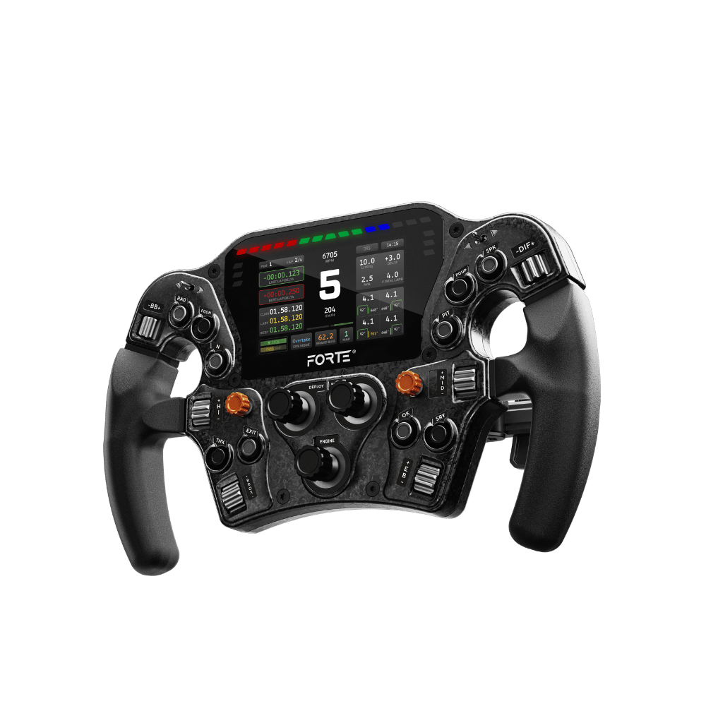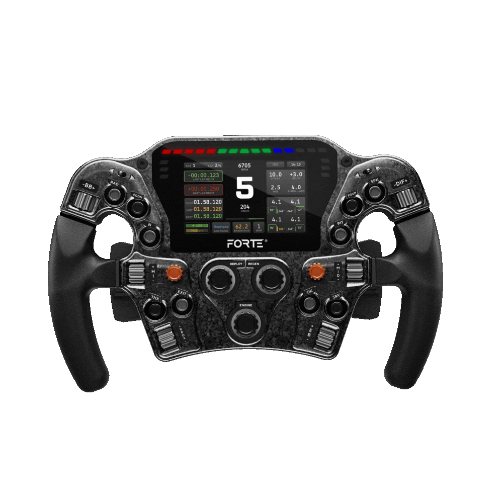 I hjertet av Forte Formula Pro ligger Aseteks proprietære RaceView-skjermteknologi – utnyttet av LCD-berøringspanelet på 60 Hz med høy oppdateringsfrekvens, som gir rask, intuitiv tilgang til telemetrien som betyr mest. Enten du er midt i svingen eller flat ut på langsiden, er viktig informasjon som RPM, gir, temperaturer og drivstoffnivåer akkurat der du trenger den – uten lagg, uten distraksjoner. Styrt av RaceHub, og med full integrasjon av SimHub, kan du velge mellom RaceHubs forhåndsdefinerte dashbord eller personalisere opplevelsen med SimHub. Eksklusivt for RaceView kan du mikse og matche funksjoner fra både RaceHub og SimHub, for eksempel ved å velge ditt favorittdashbord i SimHub og kombinere det med de unike RaceHub-animasjonene for enda bedre synlighet.