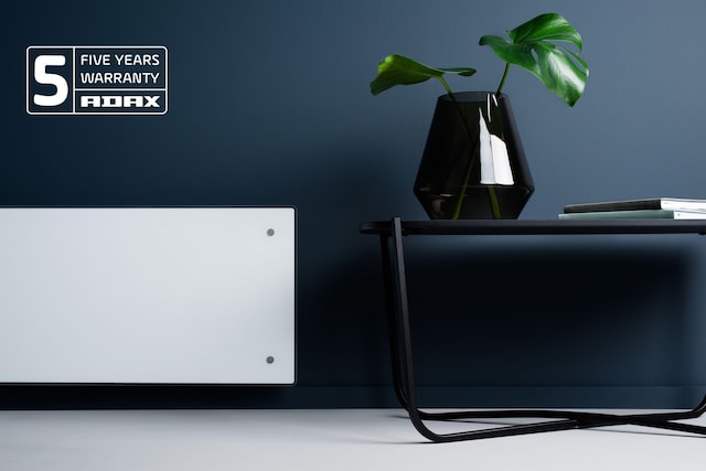 Adax panelovn er veggmonterbar, og det følger med brakett for montering på vegg.