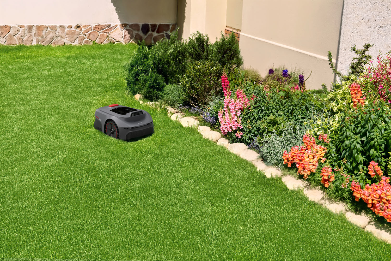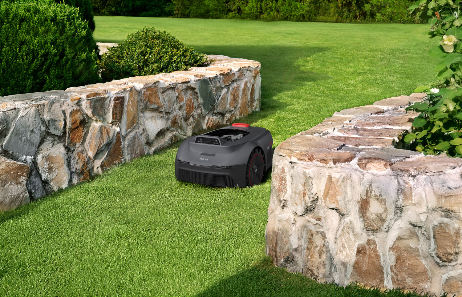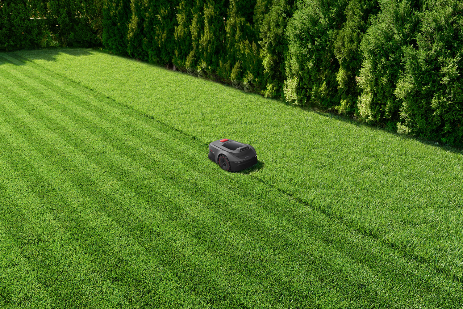 UltraEyes™ 1.0 er utviklet for å gi pålitelig og stabil navigering i hagemiljøer. De doble kameraene analyserer plenens overflate, kanter og objekter kontinuerlig og tilpasser gressklipperens hastighet og bevegelser etter omgivelsene. Systemet arbeider løpende for å identifisere gressflater og skiller dem fra gangveier, rabatter og faste hindringer.