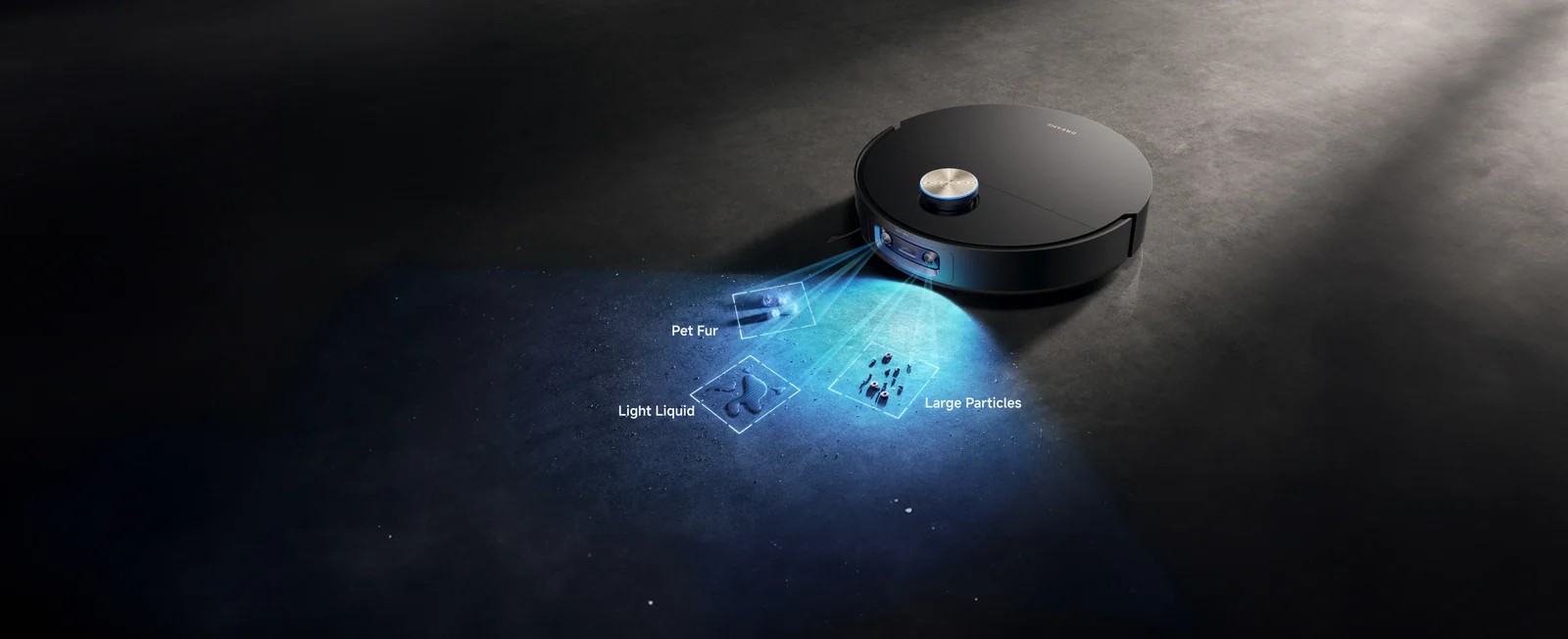 Robotens frontkamera er forbedret med infrarødt og blått lys for å identifisere smuss på gulvet nøyaktig. Systemet reduserer risikoen for å feiltolke gulvmønstre og refleksjoner og kan gjenkjenne både mørke og lyse flekker, hår og fine partikler. Basert på smusstypen bytter X60 Ultra automatisk mellom støvsuging og mopping, og forhindrer sprut og for mye fukt på tørre overflater.