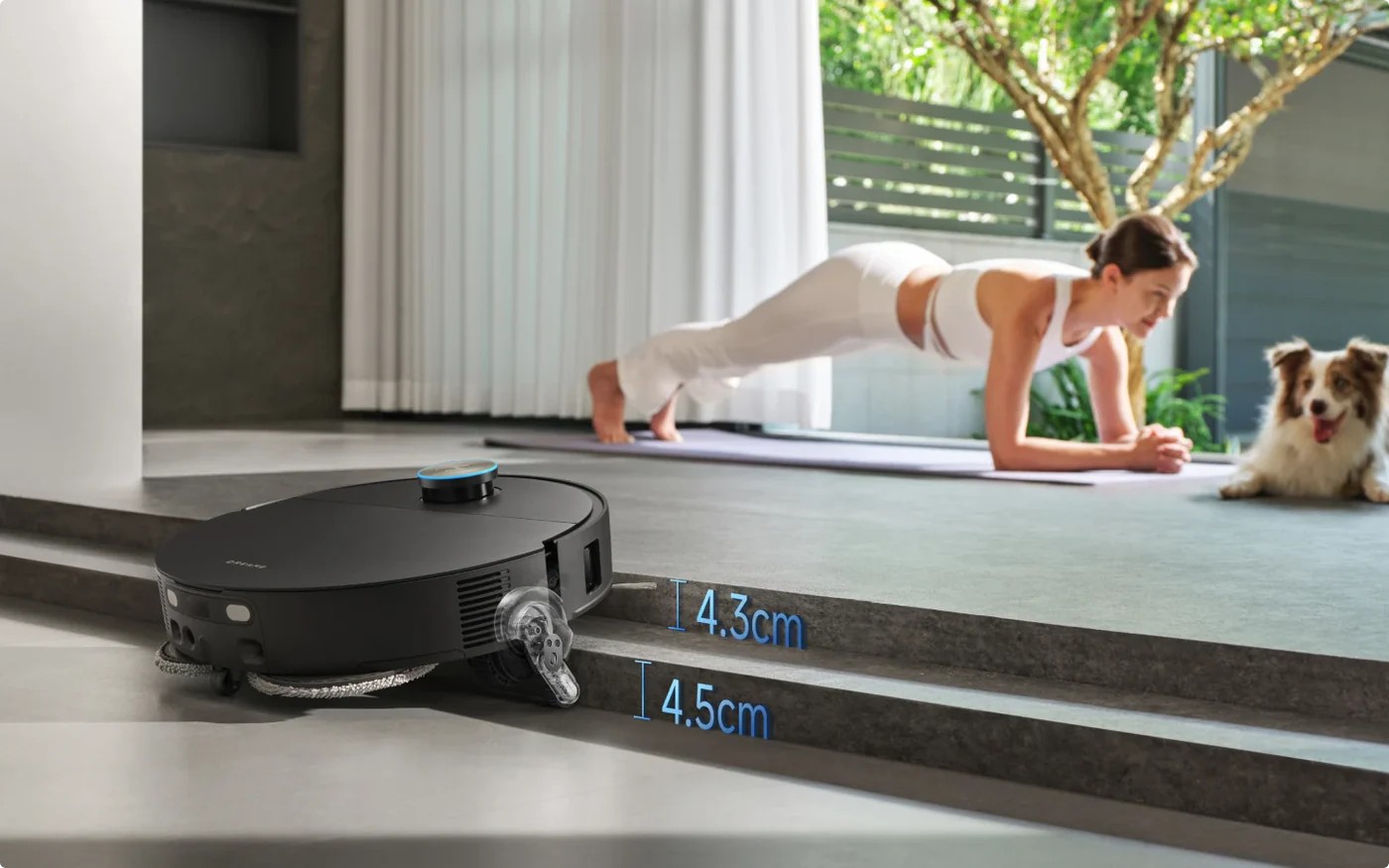 Dreame X60 Ultra når overalt med en høyde på kun 7,95 cm, noe som gjør det mulig å rengjøre under senger, sofaer, skap og andre lave møbler der støv og smuss samler seg. Den slanke designen oppnås med en uttrekkbar DToF- og LDS-sensor som automatisk tilpasser seg omgivelsene uten å gå på kompromiss med navigasjonspresisjonen.