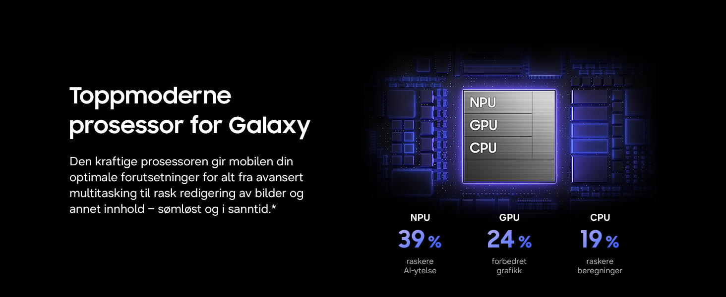 Med nye 3nm Qualcomm Snapdragon 8 Elite Gen 5 for Galaxy får du maksimal AI-ytelse¹, lynrask gaming, responsiv S Pen og profesjonelle bilder. Alt flyter uten avbrudd, uansett hva du vil skape eller oppleve.