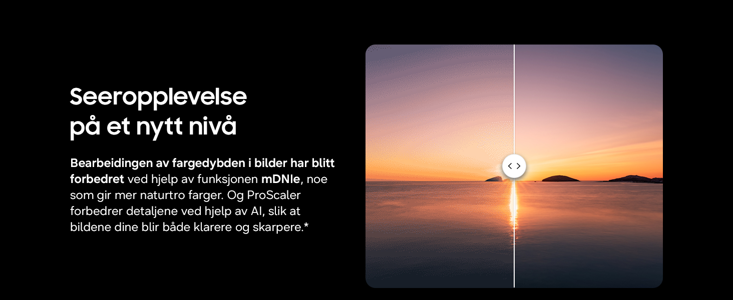 ProScaler gjør sport og raske bevegelser skarpere – direkte fra Samsungs TV-teknologi. Hver kamp og actionsekvens blir krystallklar, slik at du aldri går glipp av noe.