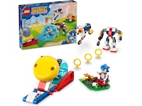 LEGO® byggesettet gir fartsfylt lek og inkluderer fartskule med utskyter, bålplass, minifigur av Sonic og to robotfigurer.