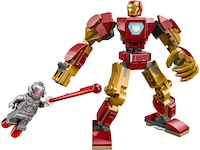 Dette LEGO Marvel robotlekesettet inkluderer to minifigurer: Iron Man med hjelm som kan åpnes og roterbart hode med forskjellige ansiktsuttrykk, og Ultron som holder et laserstråleelement. Den byggbare roboten har bevegelige armer, bein og fingre samt en knotteskyter på enden av høyre arm. Overkroppen kan åpnes inn til en cockpit, hvor Iron Man-minifiguren kan sitte. Barn får digital byggemoro med den gøyale og intuitive LEGO Builder appen som inneholder funksjoner for zooming, rotering av modeller i 3D og sporing av framdrift.