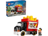 Hva finnes i esken? – Inneholder alt barn trenger for å bygge en LEGO City Pommesbil, pluss minifigurer av selger og kunde samt tilbehør