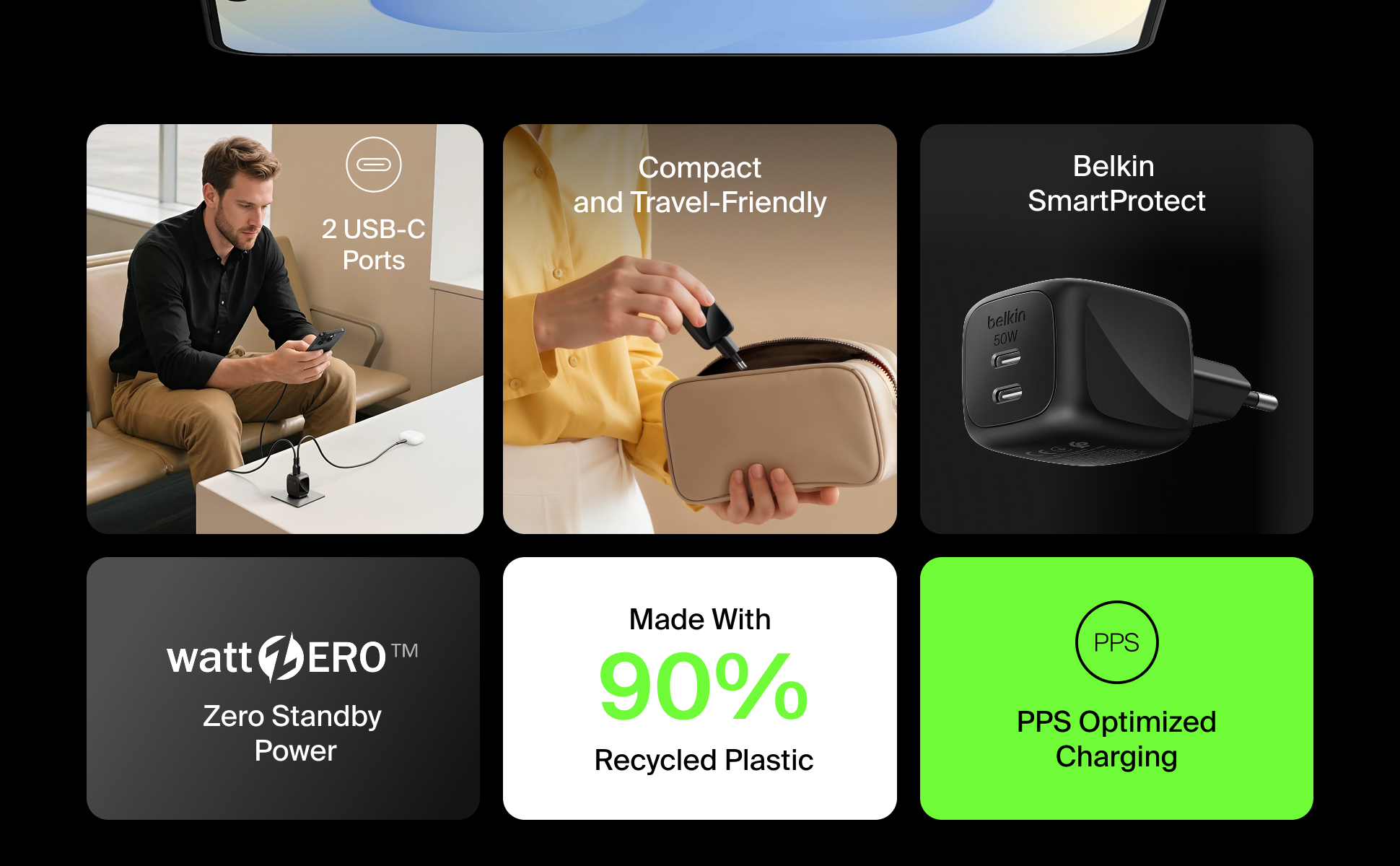 Belkin BoostCharge Pro Dual USB-C GaN Wall Charger 50W