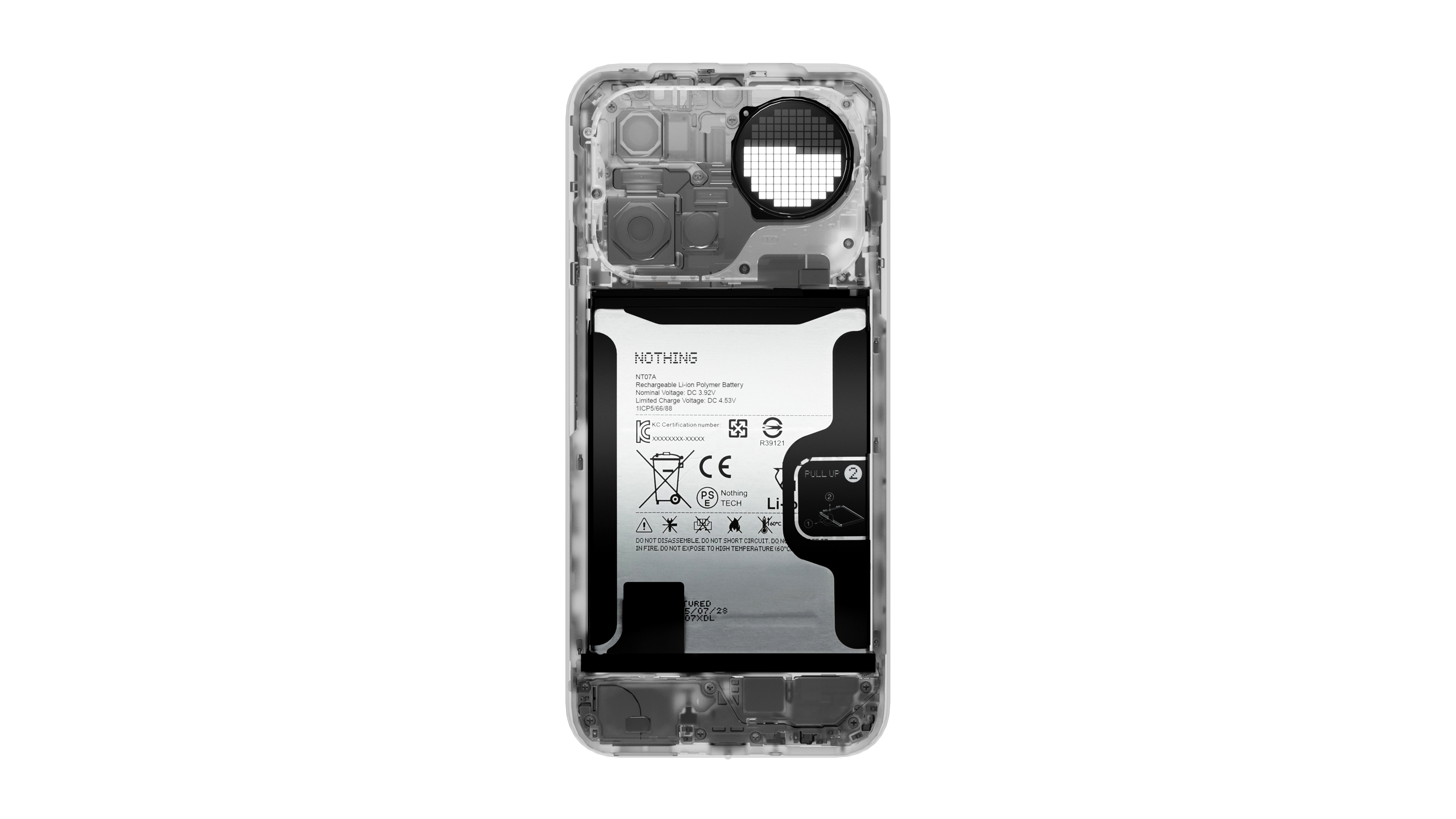 Glyph Matrix består av 137 presisjons-mini-LED-er og er 57 % større og dobbelt så lyssterk som på Phone (3).