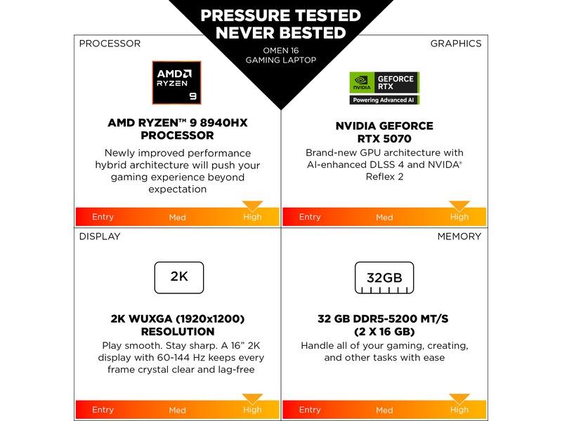 Nye OMEN 16 harikke bare ytelsen til de nyeste generasjons AMD - og NVIDIA®-komponentene, den har også de riktige termiske innovasjonene for å hindre at de brenner ut. Kombiner dette med OMEN AI for maksimal mulig FPS med et tastetrykk og Unleashed Mode for å oppnå en ekstra økning i ytelsen, så har du vår mest pålitelige bærbare PC til nå.