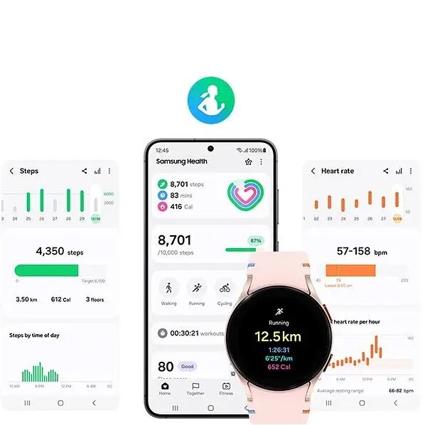 Galaxy Watch FE er mer enn en klokke; det er en personlig trener som overvåker prestasjonene dine og motiverer deg med belønningsmerker og oppløftende meldinger for å fortsette å presse deg fremover.
