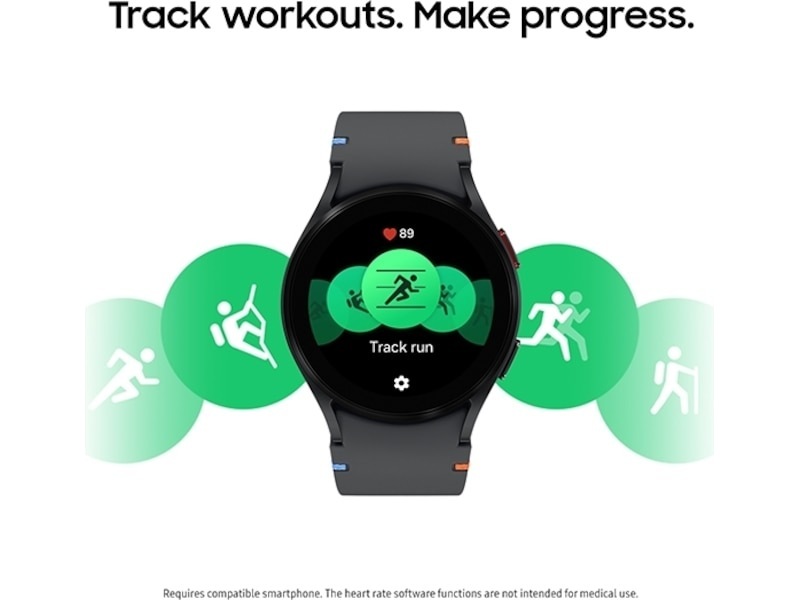Galaxy Watch FE sporer over 100 treningsøkter, fra yoga til svømming og til og med tilpassede bevegelser. Glemt å starte timeren? Ikke noe problem. Enten du løper, går eller sykler, gjenkjenner og logger den automatisk aktiviteten din.