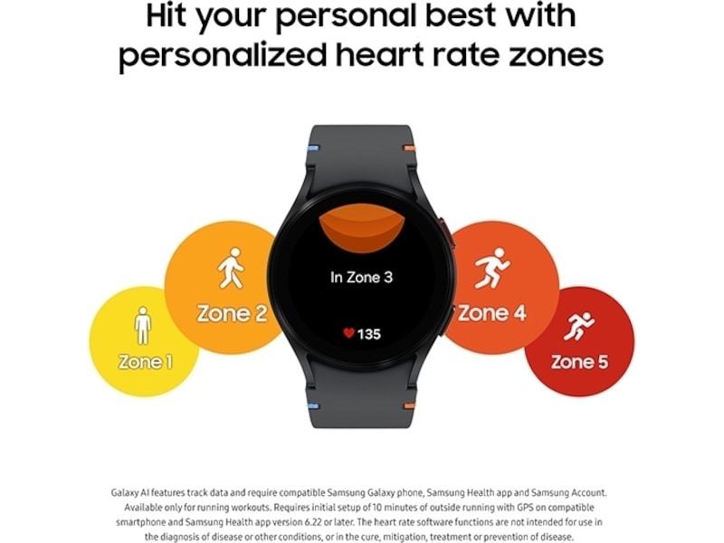 Analyser løpestillingen og tempoet ditt med Galaxy Watch FE, og tren på tvers av fem intensitetsnivåer for å forbedre løpeytelsen.