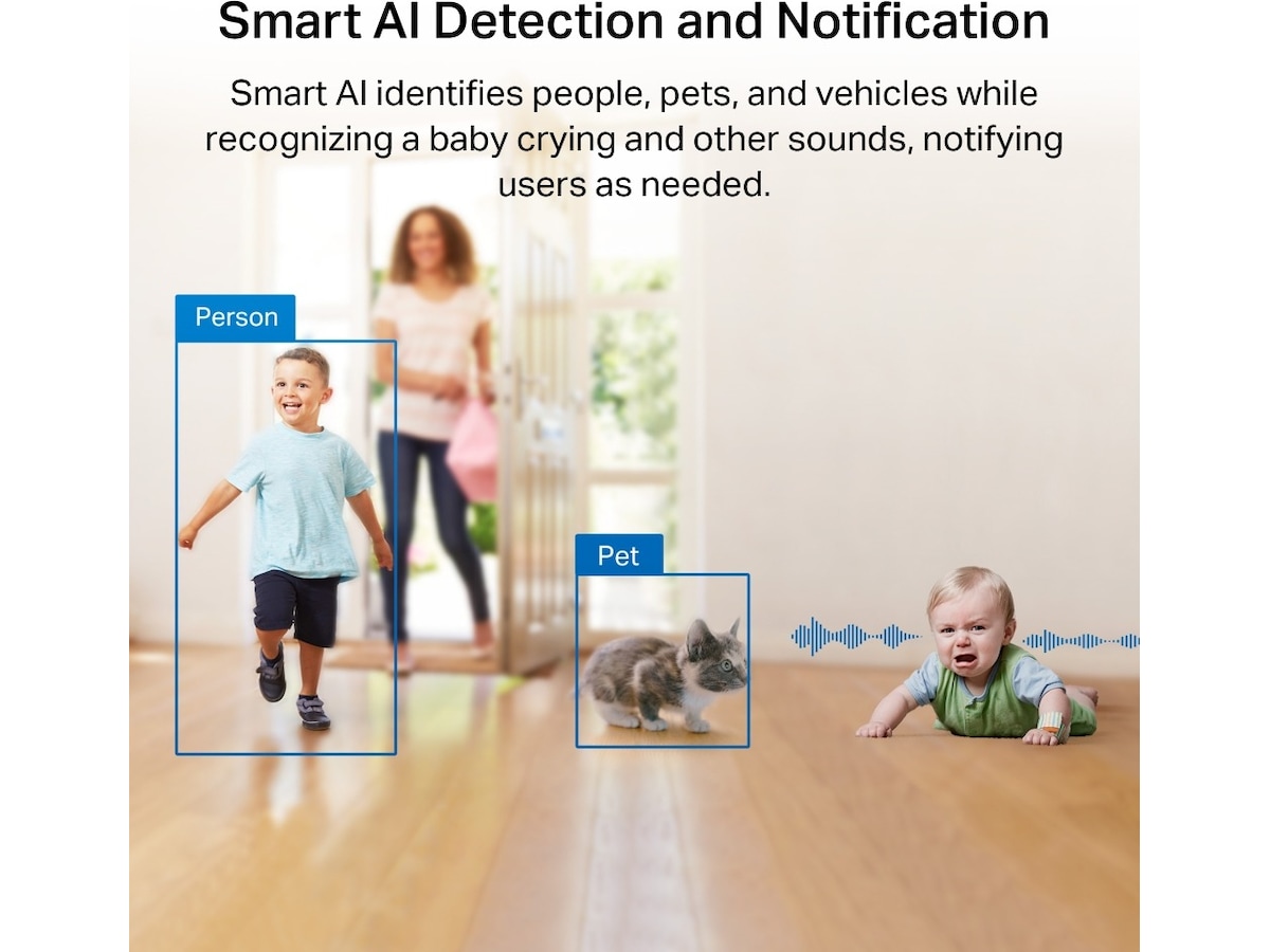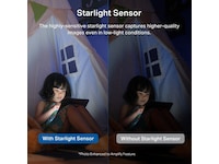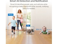 Egenskaper Tverrlinjedetektering, Personvernsmodus, Smart AI Detection, Tilpasset aktivitetssone, Panoramavisnig, Starlight Technology, Smart AI Notification, Cat Mews Detection, Built-in siren (98 dB), Øyeblikksbildevarsling, Tampering detection, Person Detection, 3D digital støydemping (DNR), Pet Detection, Wide Dynamic Range (WDR), Lyd- og lysalarm, Auto-switching, Dog Bark Detection, Nattsyn uten synlig rødt lys, Støydempende mikrofon, Vehicle Detection, Glassbruddpåvisning, Oppdagelse av babygråt, Nullstillingsknapp, High Dynamic Range (HDR), IR-cut filter