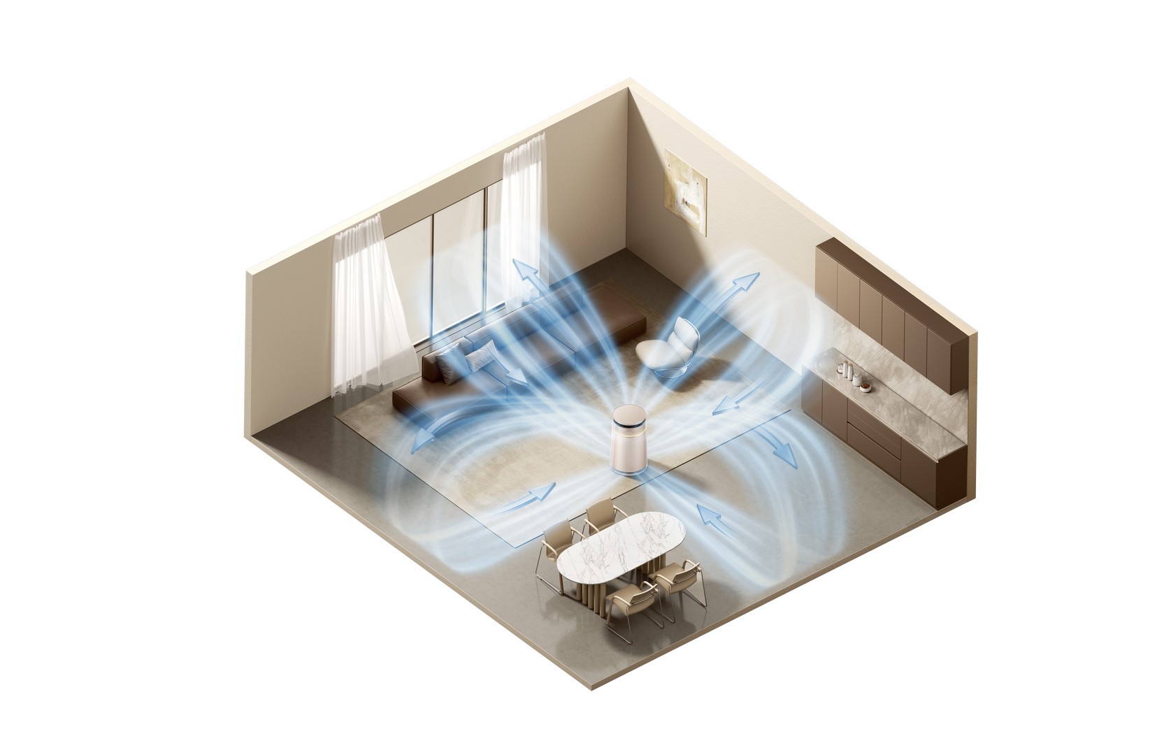 Dreame FP10 opprettholder konsekvent og effektiv luftrensing gjennom en optimalisert luftstrømdesign med målrettet undertrykk ved inntaket og forbedret luftsirkulasjon ved utløpet. Den kontrollerte luftstrømmen sikrer at forurenset luft trekkes inn mer effektivt, mens den rensede luften fordeles jevnt tilbake i rommet. Dette bidrar til å behandle hele rommet mer konsekvent, i stedet for å konsentrere rensingen til et begrenset område nær enheten.