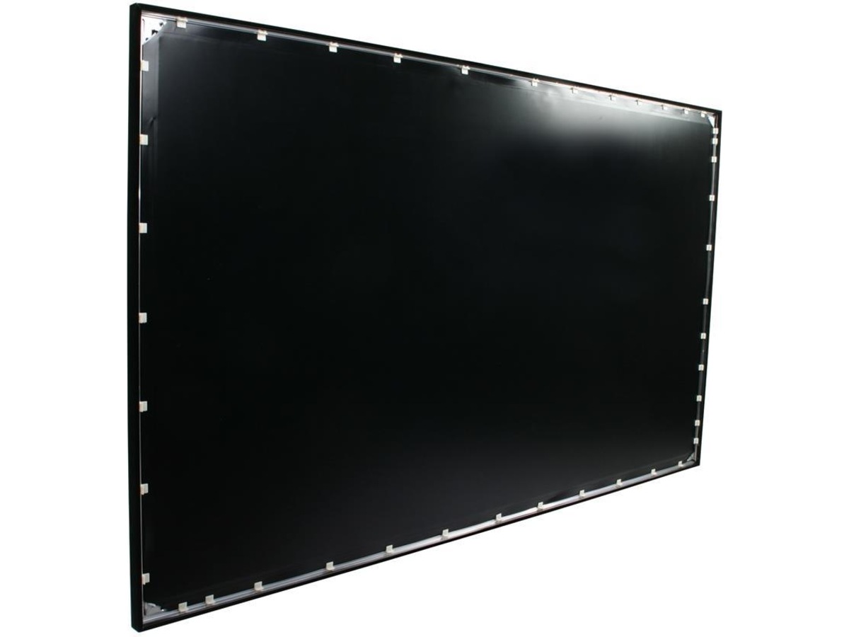 Anodisert, svart aluminiumsramme med overflate med svart velur for å forbedre utseendet med den stilige, maskerte kanten som absorberer overskuddet fra projektorlyset.