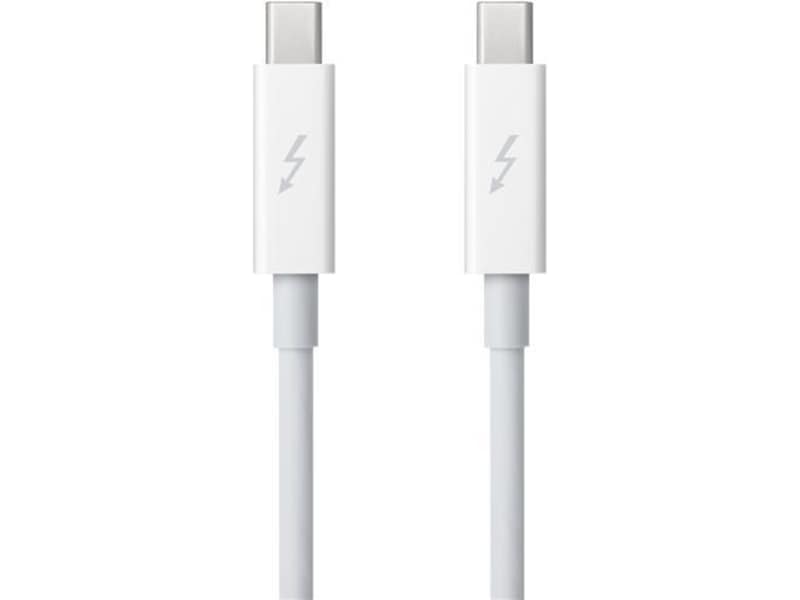 Bruk Apple Thunderbolt-kabelen for å koble Thunderbolt-kompatible eksterne enheter til Mac mini, iMac, MacBook Pro eller MacBook Air. Kabelen kan også brukes til Måldiskmodus mellom to sammenkoblede Mac-er som støtter Thunderbolt, eller for å bruke en iMac som skjerm for en MacBook Pro med Thunderbolt.