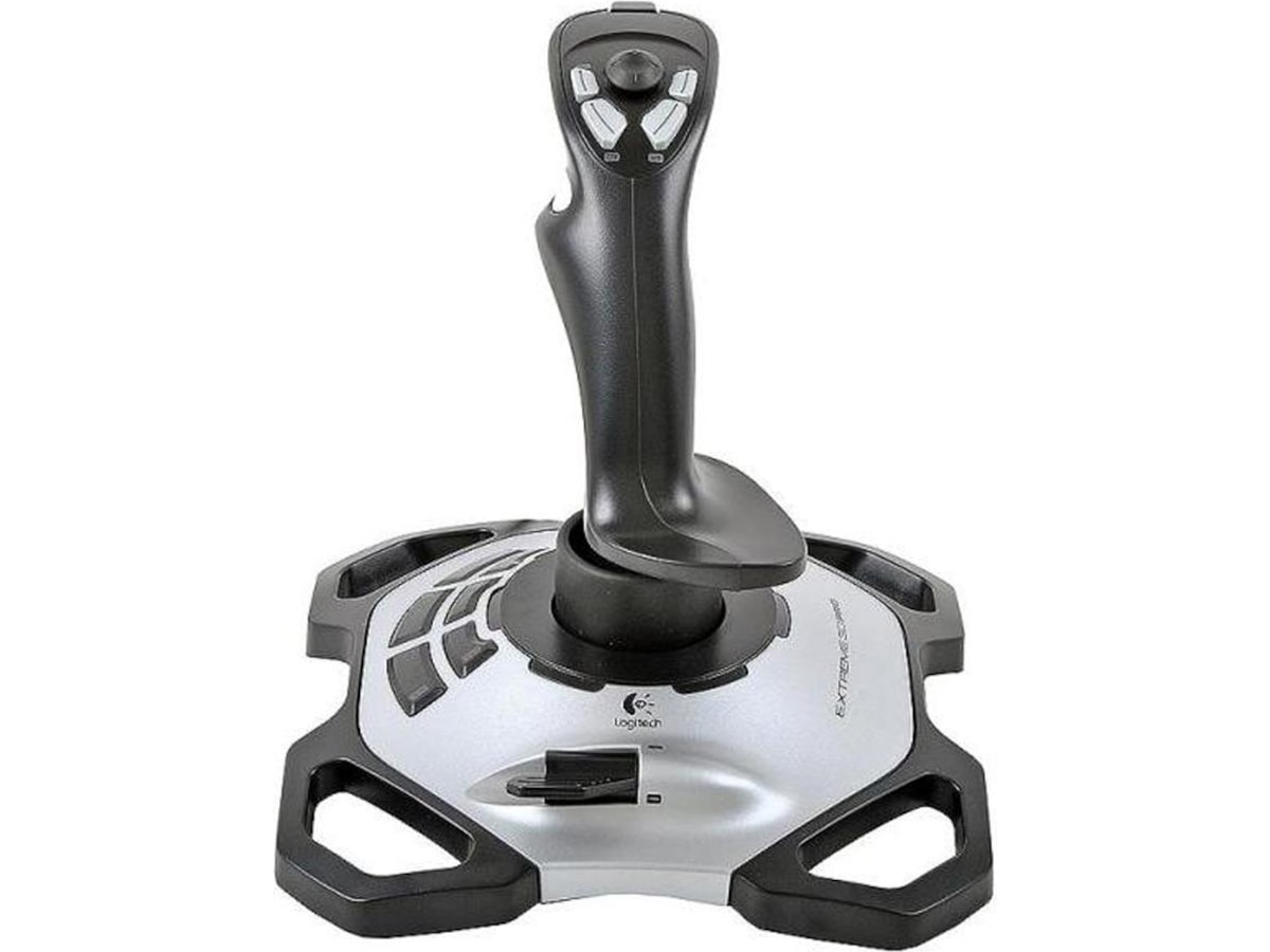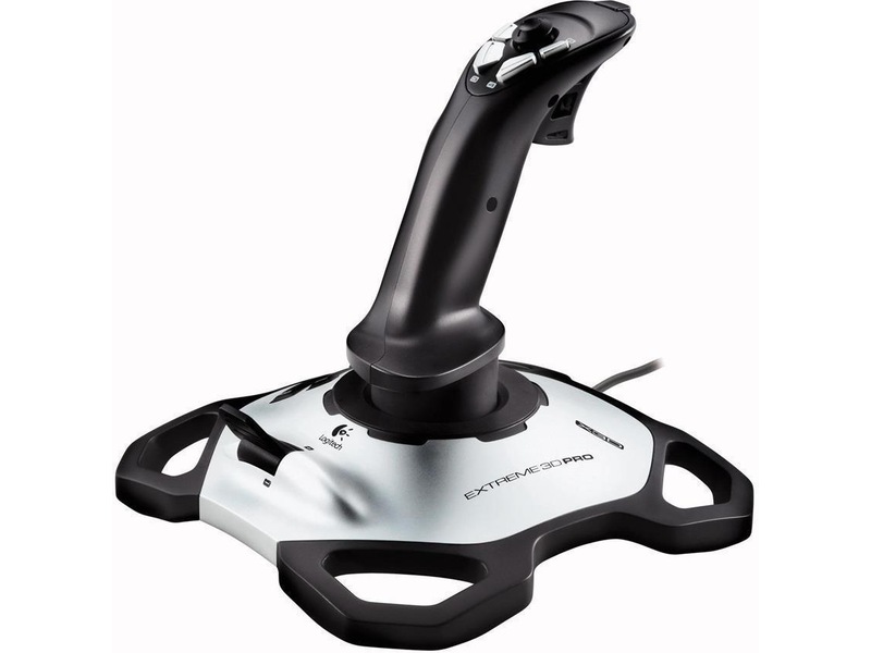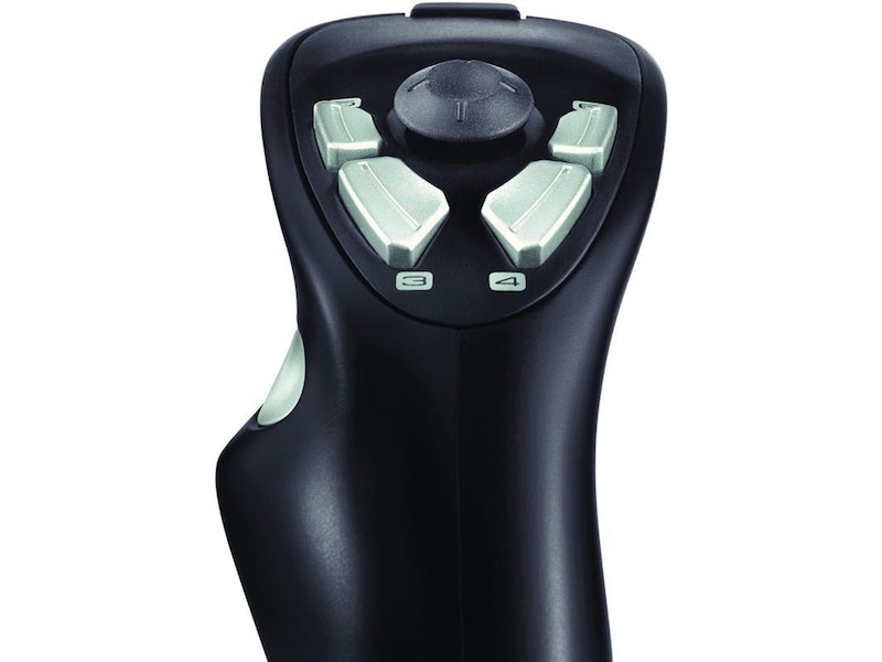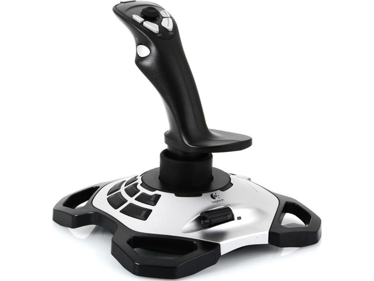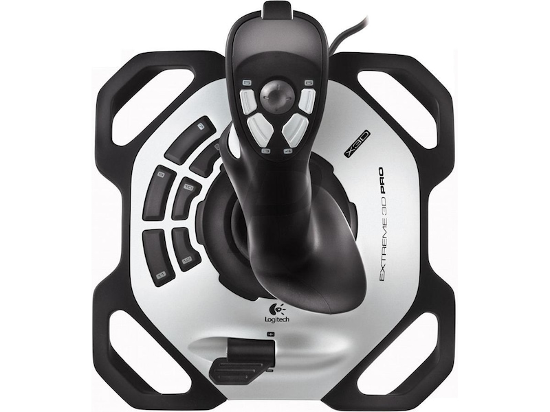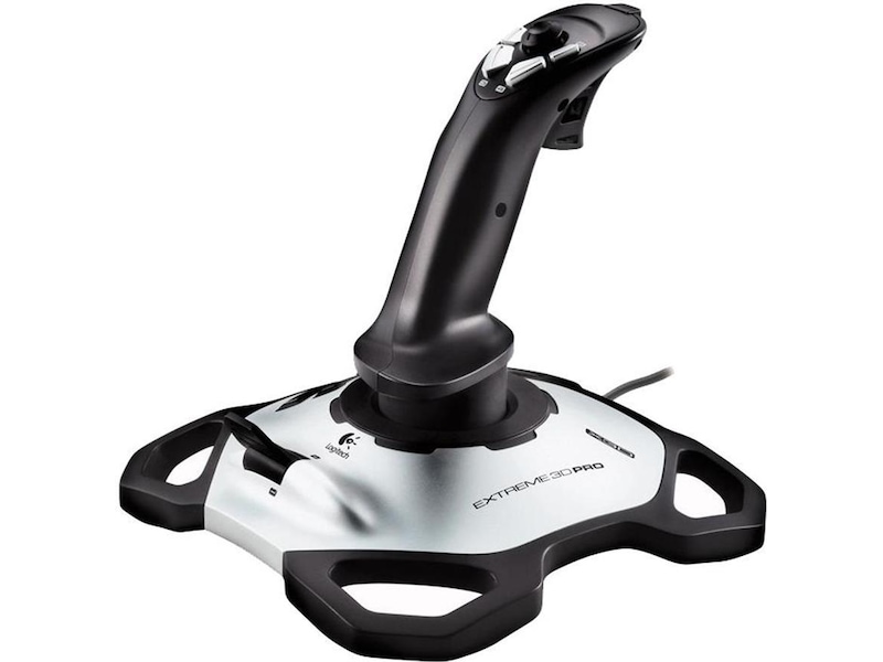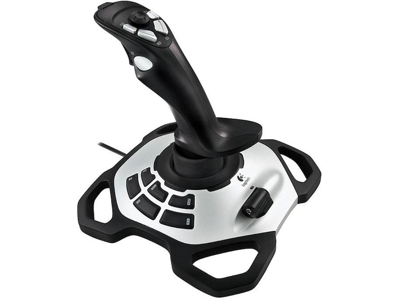 Logitech Extreme™ 3D Pro. Med avanserte kontroller og et dreibart håndtak er styrespaken stabil, enten du kjemper en akrobatisk luftkrig eller sikter deg inn på et mål langt unna.