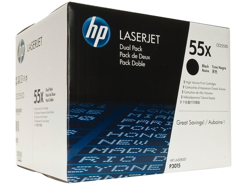 Kjøp 2 pack og spar 10% - Denne svarte HP 55X-tonerkassetten gir skarpe, profesjonelle og effektive utskriftsresultater med pålitelig ytelse - Fordi den er laget for å gi definert grafikk og tydelig tekst, kan denne tonerkassetten garantere utførelse av høy kvalitet - Den er enkel å resirkulere og er garantert fri for skader og feil i garantiperioden - Forventet levetid (sider): 12 500 - Kompatibel med: LaserJet Enterprise 500 MFP M525dn, 500 MFP M525f, flow MFP M525c, P3015, P3015d, P3015dn, P3015n, P3015x: LaserJet Pro MFP M521dn, MFP M521dw