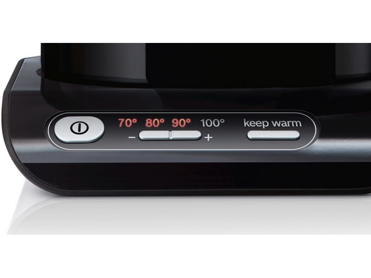 Tre sikkerhetsfunksjoner: Automatisk avstenging, beskyttelse mot overopphetning og tørrkoking, avstenging når kannen løftes fra basen. TemperatureControl: Temperaturvalg Dekselåpning ved tastetrykk KeepWarm-funksjon: Holder ønsket temperatur i opptil 30 min.
