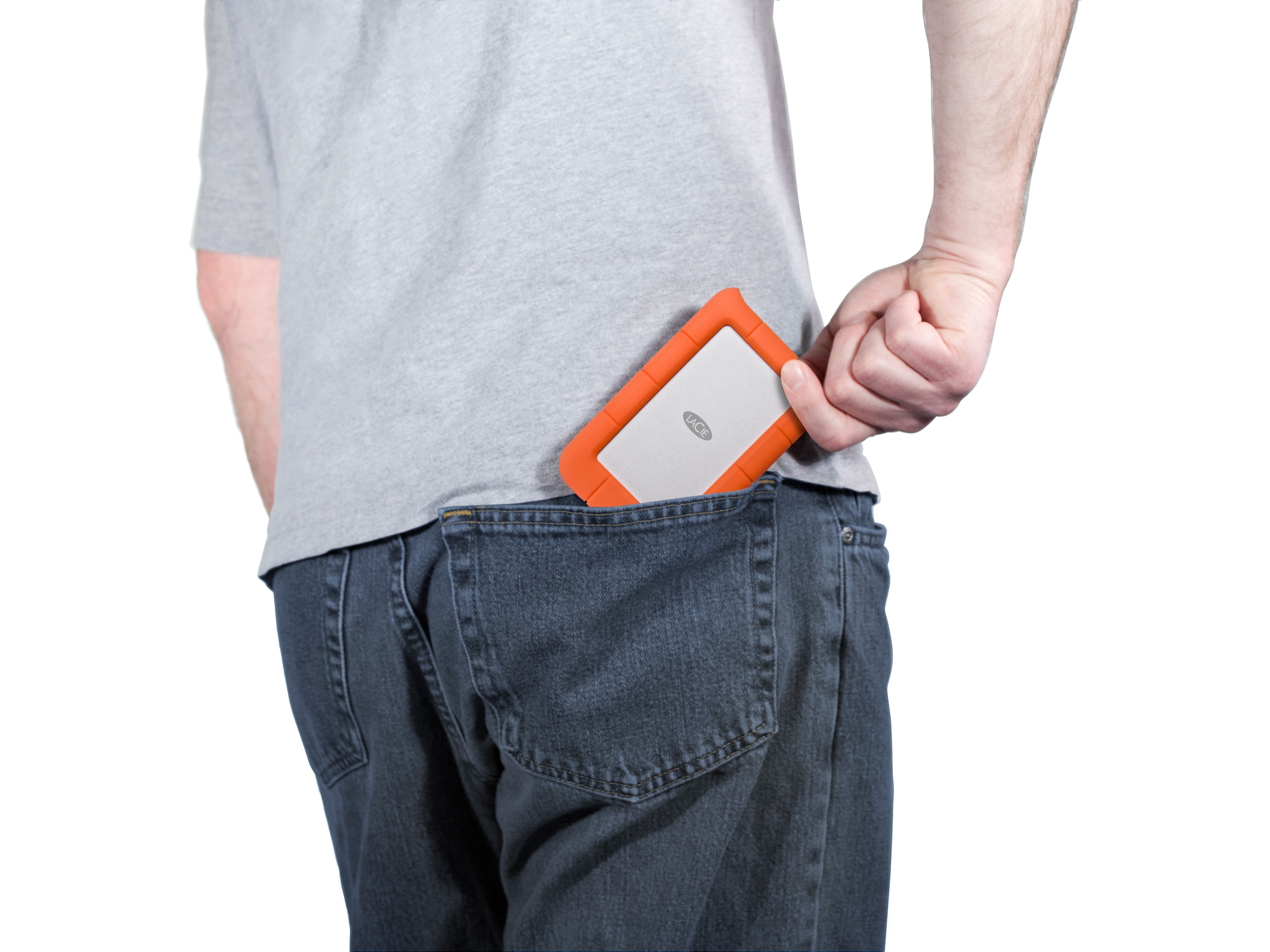 LaCie Rugged Mini Hard Disk deler funksjoner med vår populære Rugged Hard Disk, som støtsikkerhet, fallbestandighet og et gummilag for ekstra beskyttelse. Men med Rugged Mini har vi gått ett skritt videre: Den tåler også regndråper og høyt trykk – du kan kjøre over den med en bil som veier 1 tonn, og den vil fortsatt fungere! Den lille størrelsen gjør den perfekt å ta med seg uansett hvor du går, og den robuste utsiden gir beskyttelse mot fall, støt eller trykk.