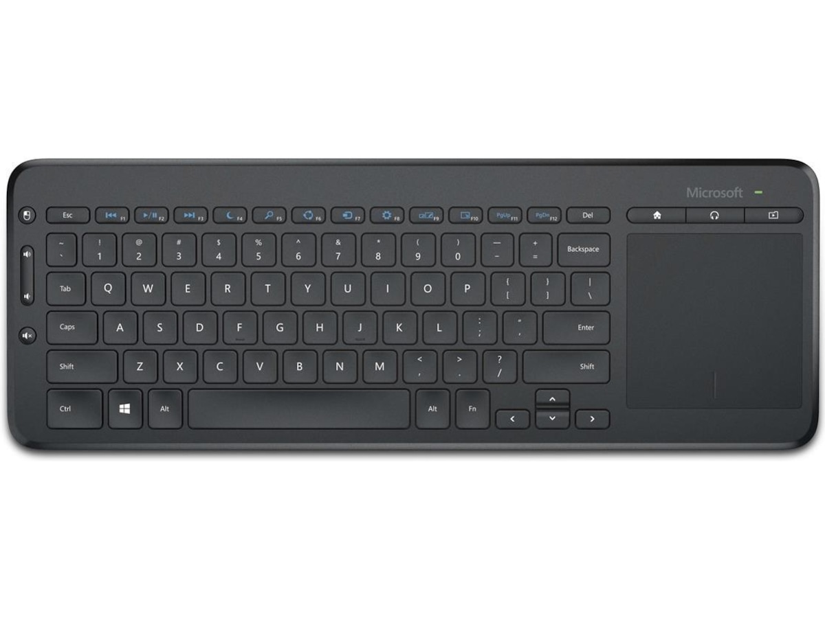 All-in-One Media Keyboard er den perfekte enheten for stuen eller hjemmekontoret. Det har tastesett i full størrelse og en integrert flerberøringsstyrematte – skriv, sveip, dra, zoom og klikk enkelt. Det har mediehurtigtaster som kan tilpasses, slik at du får Internett og favorittmusikk, -bilder og -filmer like for hånden. Tastaturet har også en robust design, slik at det ikke er noen grunn til å bekymre seg for daglige støt og litt søl. All-in-One Media Keyboard er alt du trenger for komfortabel skriving og uanstrengt navigering.