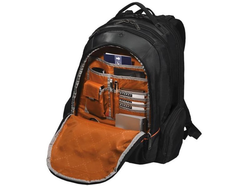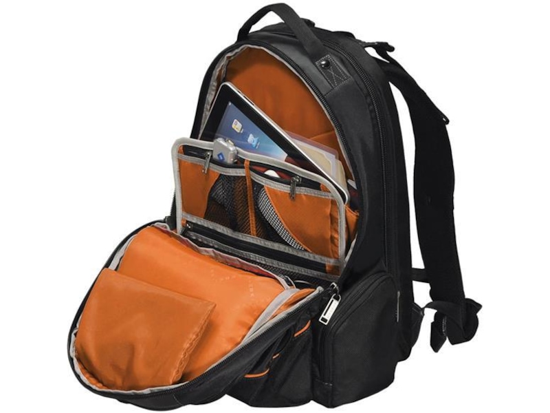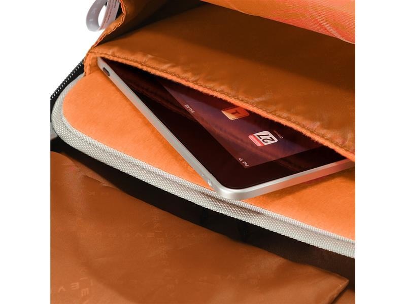 Det romslige hovedrommet har store lommer med glidelås, skillevegger for å holde dokumenter eller periferienheter adskilt og en lomme fôret med myk, fin filt som er ideell for å holde en iPad, Kindle eller et annet lignende nettbrett trygt. Forromet har masser av lommer som du kan oppbevare visittkortene dine i, to pennelommer og lommer for andre viktige dokumenter eller elektroniske komponenter.