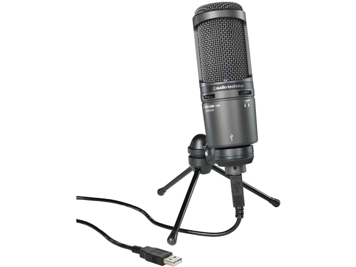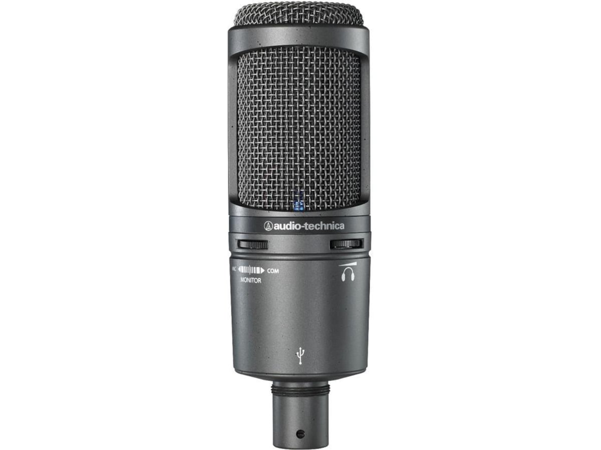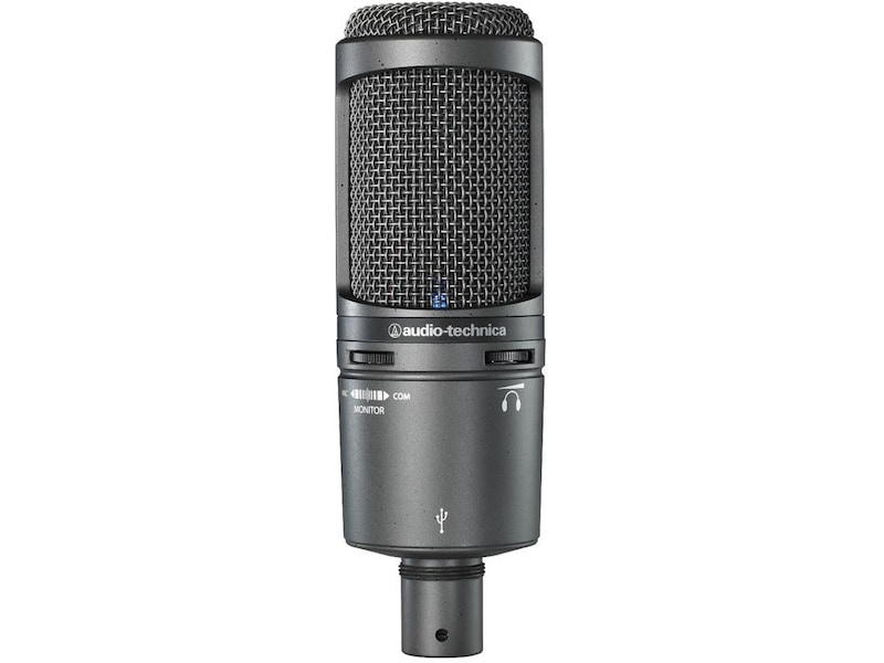 AT2020USB+ har en innebygd hodetelefonkontakt med volumkontroll som lar deg overvåke mikrofonsignalet direkte uten forsinkelser. Den tilbyr også mikskontroll som kombinerer mikrofon og forhåndsinnspilt lyd. Mikrofonens kardioideopptaksmønster gir utmerket avvisning utenfor aksen, mens A/D-konverteren med en 16-bits, 44,1/48 kHz samplingsfrekvens sørger for ekstremt godt artikulert lydgjengivelse.