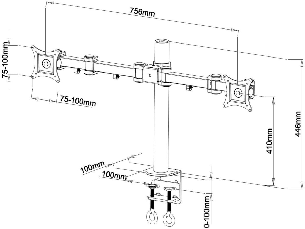 Dette skjermstativet har roterbare 75/100 mm VESA-plater. Det lar deg sette skjermene i enten liggende (horisontal) eller stående visning (vertikal).