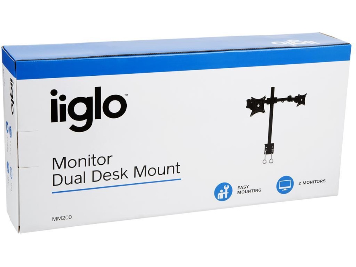 iiglo skjermfeste for to skjermer er perfekt for hjemmekontoret eller arbeidsområdet. Det hjelper til med å frigjøre plass på skrivebordet ved å feste skjermene dine. Finn den perfekte visningsvinkelen!