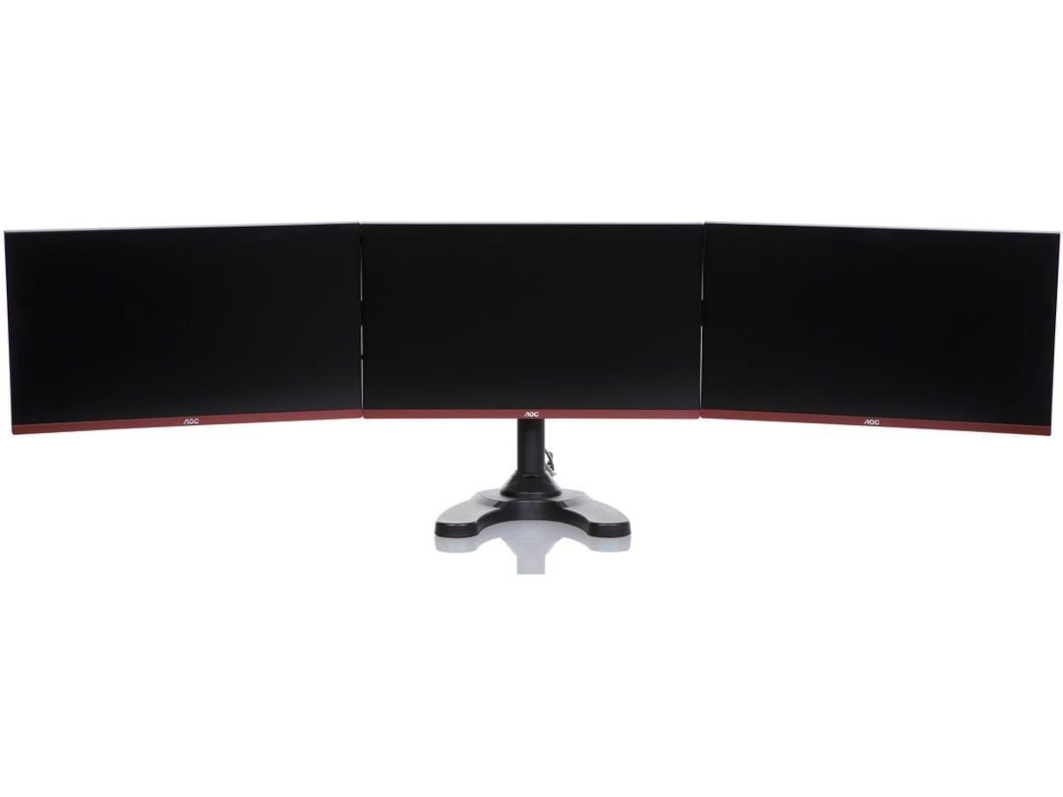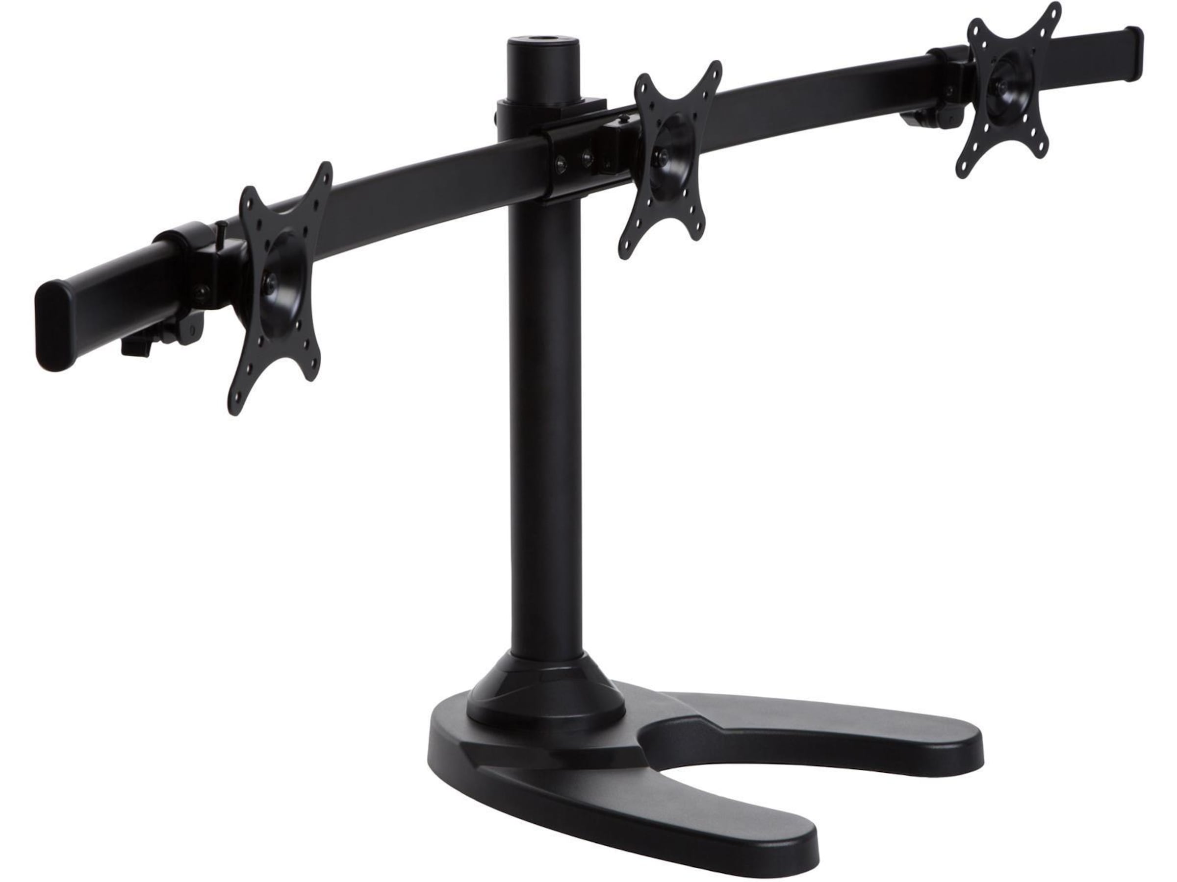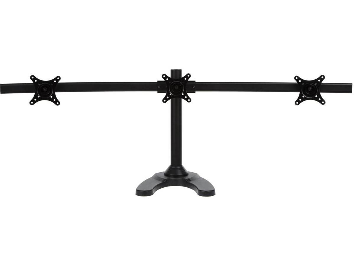 iiglo-skjermstativet lar deg montere tre skjermer sammen på skrivebordet. Skjermene kan vinkles, roteres og vippes individuelt. Høyden på skjermene er også justerbar. Dette festet kan plasseres frittstående med et stabilt stativ eller festes sikkert med bolter til skrivebordet ditt. Det leveres med 75/100 mm VESA-plater, som gjør det enkelt å installere de fleste skjermer på 13–24".