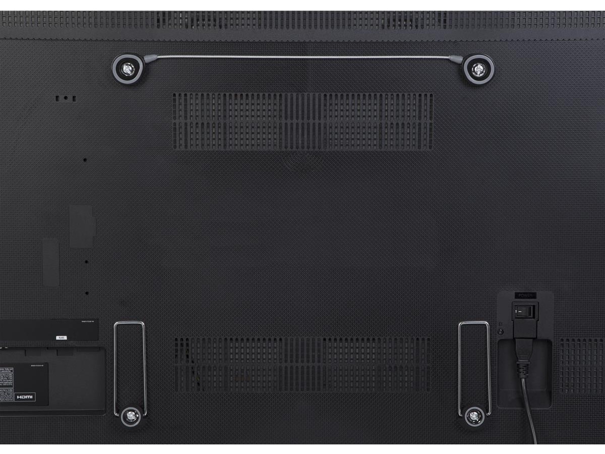 - Vær forsiktig når du hekter TVen på veggen. Pass på at stålvaieren hektes på begge veggfestene.