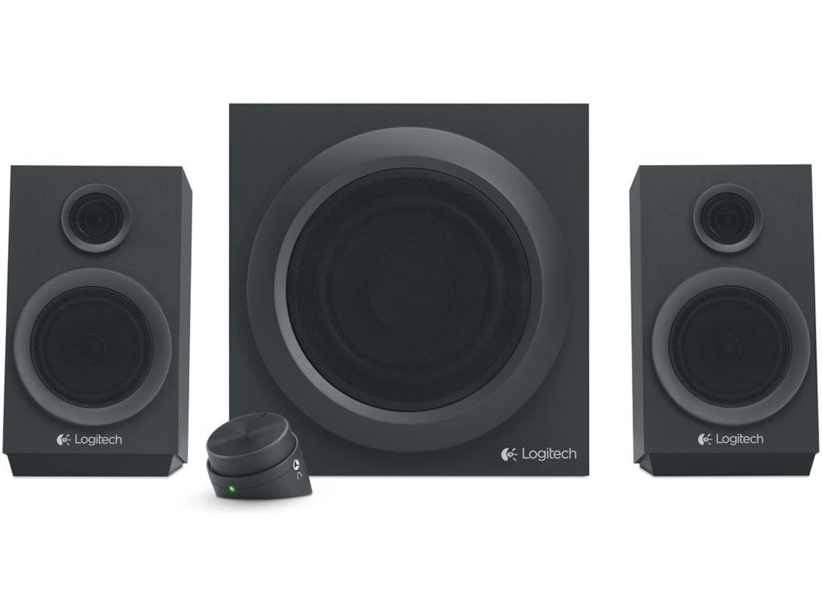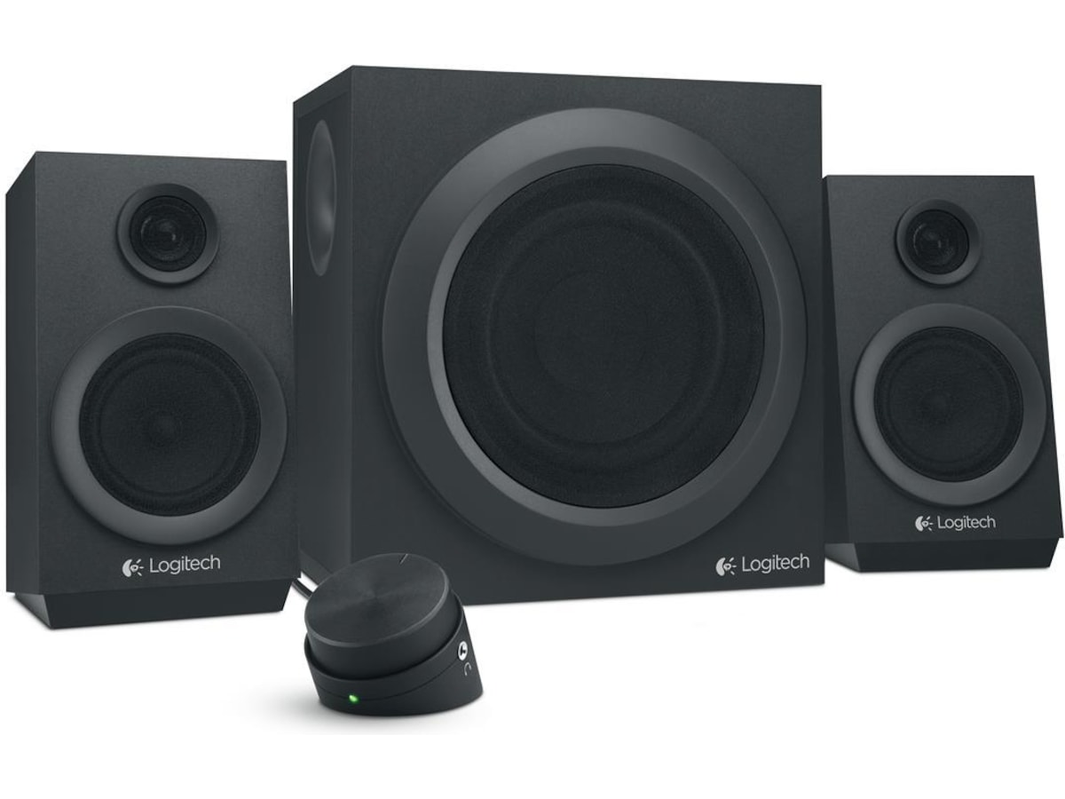 Kraftig lyd, dyp bass. Logitech® Multimedia Speakers Z333 produserer 80 W* spisseffekt med dyp bass for økt intensitet i musikk, film og spill. Flere innganger gjør det mulig å kople til nesten hvilken som helst enhet med lydutgang. *40 W RMS-effekt