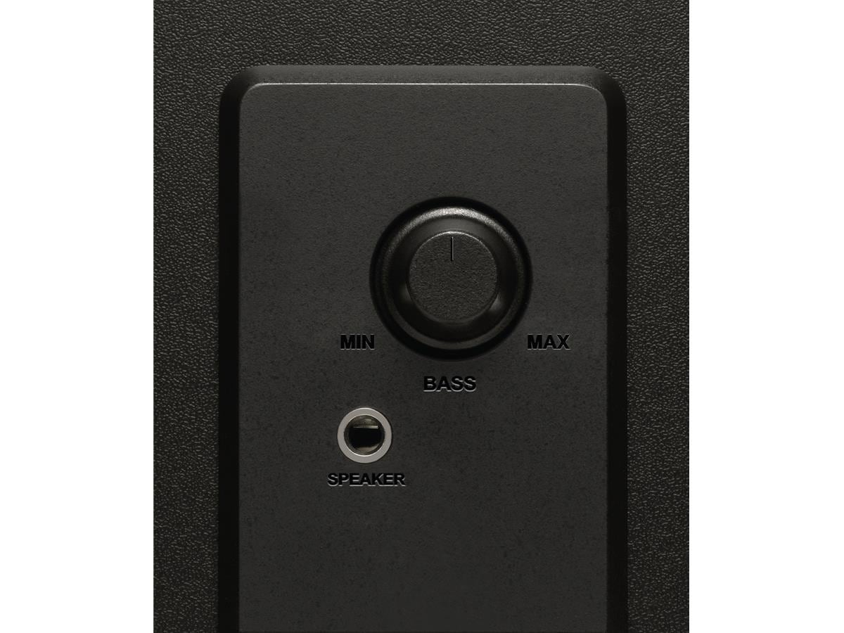 Beskrivelse Følbar fyldig bass. En nedovervendt basshøyttaler med 4-tommers element sikrer en rik bassopplevelse med disse 2.1-høyttalerene.