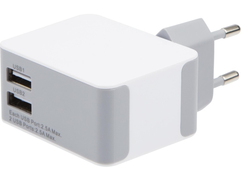 Hvit, utgang USBx2 (2.5A/5V), Smart Charger