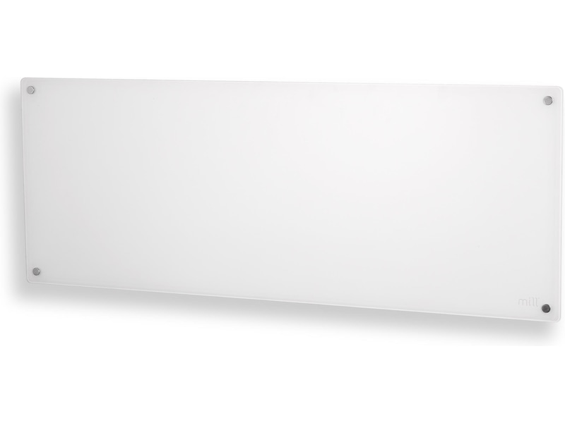 Panelovn 1200W med hvit herdet glassfront fra Mill.