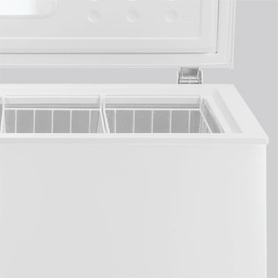 Lokket på fryseren er utstyrt med to solide og balanserte hengsler. Disse holder toppen på plass når fryseren åpnes og forhindrer at fingre blir klemt.