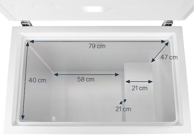 iiglo Fryser gir deg god plass til alle slags frosne varer, og 1 medfølgende skyvekurv gjør det enkelt å få oversikt over innholdet i fryseren. Hver kurv har innvendige mål på 16,8 x 33,8 x 17,5 cm. Hvis man ønsker det, kan man legge til flere kurver