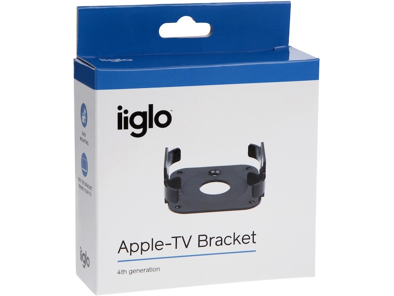 iiglo ATV104 er en liten braket i sort hard plast som du enkelt monterer bak TVen. Du kan enten bruke de vedlagt skruene til å montere festet i vegg, eller bruke den vedlagte skumteip (3mm) til å feste bak på skjermen. Braketten er åpen i to sider, slik at du får full tilgang til kabelinnganger og signaler fra fjernkontrollen. Ved å montere Apple TV festet bak skjermen kan du unngå unødvendig kabelrot, og med en kortere HDMI kabel får du et ryddigere oppsett i stuen din.
