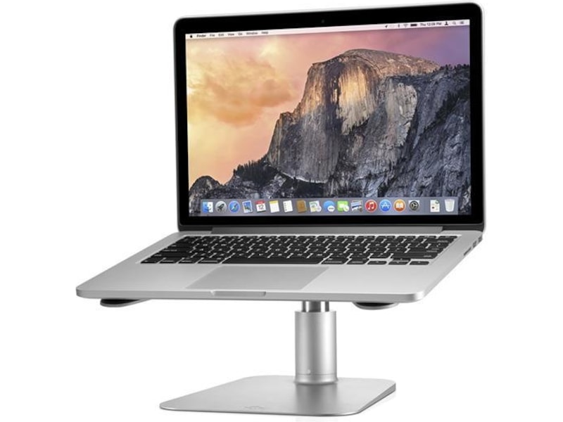 Enten du har en 11-tommers MacBook Air eller en 15-tommers MacBook Pro, gir dette høydejusterbare stativet deg skrivebordskomfort. HiRise har V-formede armer som er fôret med et mykt silikon som griper tak i bunnen av Mac-en din. Armene muliggjør også maksimal luftstrøm rundt laptopen din. På bunnen av metallstativet finner du teflonskinner som lar deg dreie HiRise fra side til side uten å etterlate merker på overflaten på bordet.