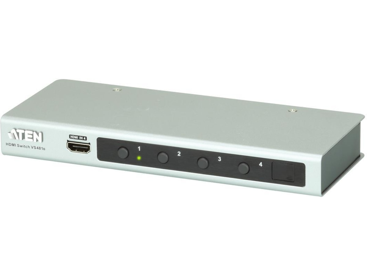 Den 4-ports HDMI-switchen VS481B lar deg raskt koble til 4 HDMI-kilder til HDMI-skjermen din og enkelt veksle mellom dem via trykknapper på frontpanelet, RS-232 eller en infrarød fjernkontroll. Frontpanelets LED-lamper viser med et øyekast hva slags kildeenhet som er valgt for skjermen.
