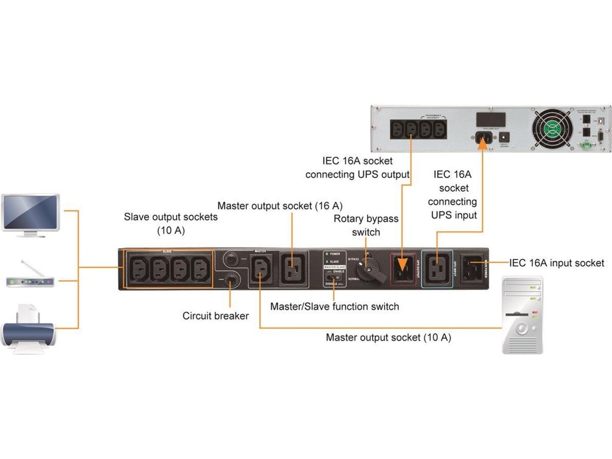 1 x strøm IEC 60320 C19, 5 x power IEC 60320 C13 |